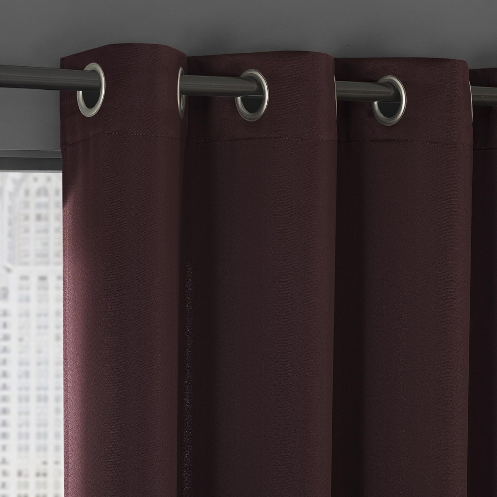 Soho Energy Saving Noise Reducing Blackout Grommet Curtain Panel Pairs infuse a modern sophistication into any living space. Equipped with built-in metal grommets for easy hanging on standard curtain rods up to 1.5" in diameter. Blackout technology blocks out most outside light, offers outside noise reduction by up to 30%, and decreases energy lost through your windows by up to 40%. Comfort is optimized with thermal properties that help keep summer heat and winter chill out of your home. Hang in your living room for enhanced privacy, or in your bedroom for a sounder, more uninterrupted sleep. Pair includes 2 merlot red panels, each measuring 54" width by 84" length. Measure carefully before selecting your desired size and quantity. Rod not included. Machine wash cold on gentle cycle. Use non-chlorine bleach when needed. Tumble dry on low heat, using a cool iron as needed. Blackout technology blocks out most unwanted light while enhancing privacy Energy efficient design reduces energy lost through your windows by up to 40% Thermal properties help keep summer heat and winter chill out of your home Noise reduction up to 30% helps you get a sounder, more uninterrupted sleep Built-in metal grommets fit curtain rods up to 1.5" in diameter Pair includes 2 panels