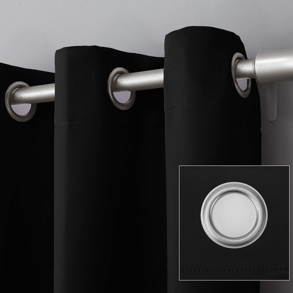 These curtains are a game-changer! The blackout fabric blocks light perfectly, making my room feel cozy and private. They slide smoothly on the rod thanks to the sturdy grommets, and I’ve noticed less noise from outside. Plus, they help keep my room cooler in summer and warmer in winter—definitely energy-efficient. The sleek black design adds a modern touch to my space. Highly recommend for both style and function!