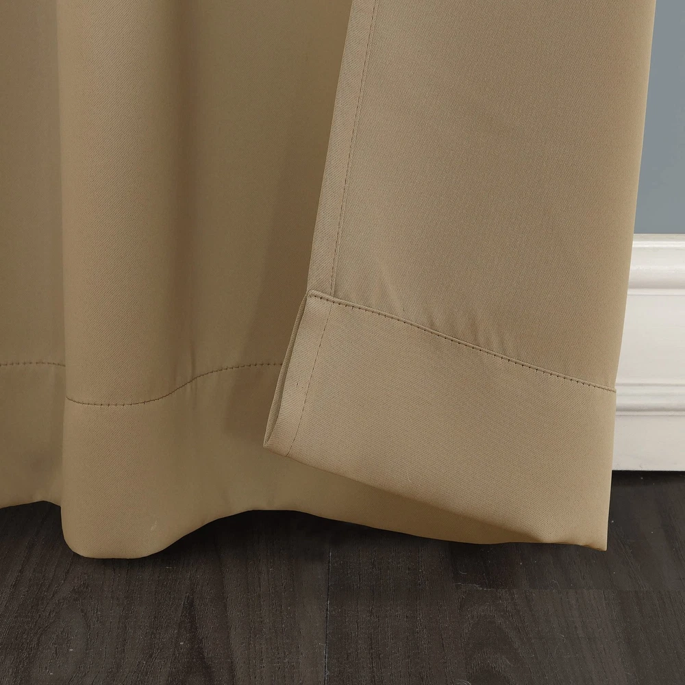 Blackout technology blocks out most unwanted light while enhancing privacy Energy efficient design reduces energy lost through your windows by up to 40% Thermal properties help keep summer heat and winter chill out of your home Noise reduction up to 30% helps you get a sounder, more uninterrupted sleep Built-in metal grommets fit curtain rods up to 1.5" in diameter Pair includes 2 panels