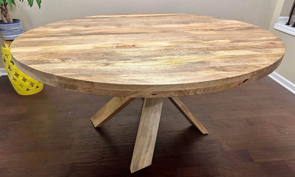 Enhance your dining space with this stunning Arvis Solid Wood Contemporary 60'' Long Round Dining Table. Crafted from high-quality wood, this dining table is sturdy and durable. The table has a sleek and modern design that complements any dining space. It has a round shape and measures 29.5" in height and 60" in width, providing ample space for your family and guests. The table comes in a beautiful brown color and has a wooden handle that adds to its rustic charm. It is easy to assemble and requires no additional parts. This dining table is perfect for hosting dinner parties, family meals, and casual gatherings. Add this contemporary and stylish piece to your home today!