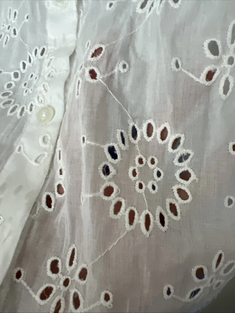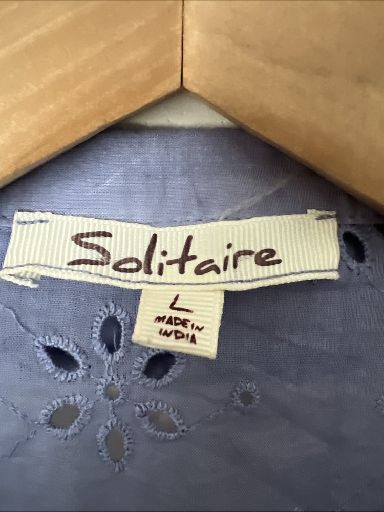 Solitaire Anthropologie Dip Dye Eyelet Blue White Cover Up / Button Down Shirt Size: L Large Gorgeous, Boho shirt. Floral details....