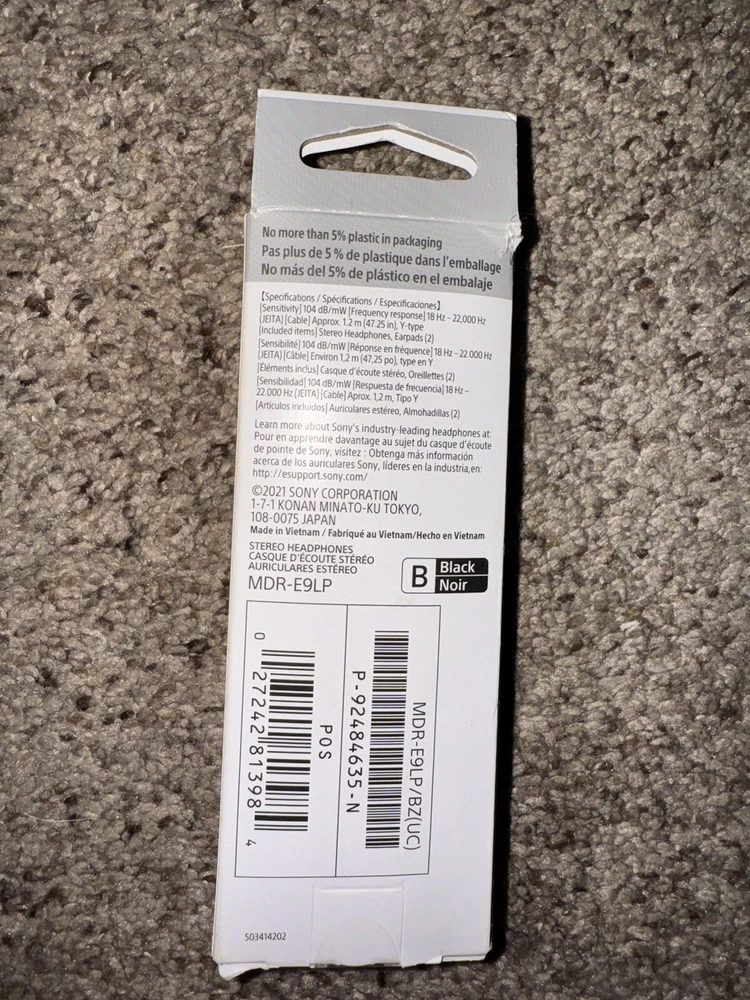Sony Clear Sound Stereo Earbuds - White - MDR-E9LP. Shipped with USPS Ground Advantage.