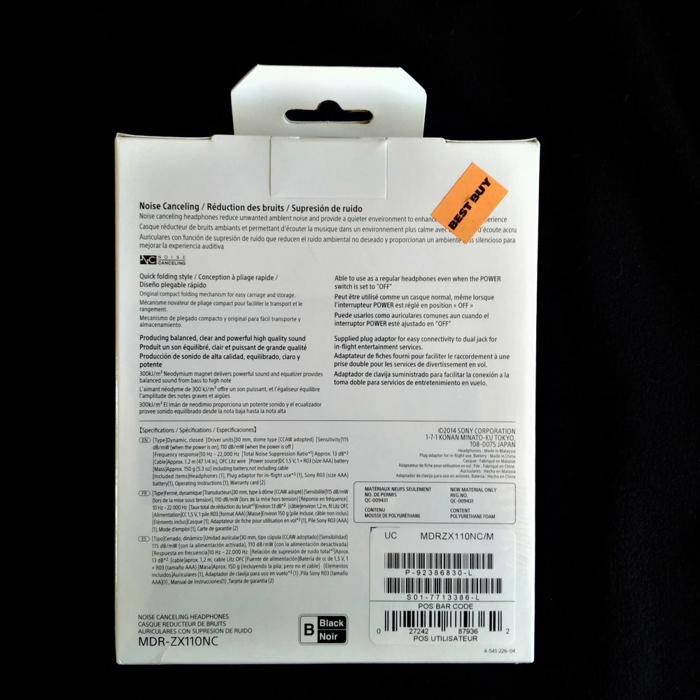 Sony Headphones MDR-ZX110NC - Unopened Original Sealed Box - Best Buy - BLACK.