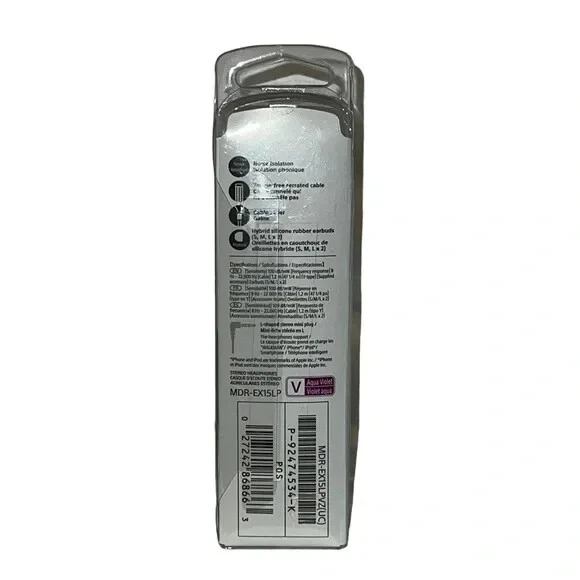 Sony EX Series Earbuds, Comfortable Hybrid silicone earbuds (S,M,L) that allow for fine-tuned, long-lasting comfort. Sound comes through high quality 9mm dome type driver units coupled with high-energy neodymium magnets produce high resolution treble and mids with powerful bass. A tangle-free Y-type cord with cord slider prevents tangles on the go. Comfortable, secure-fitting silicone earbuds Lightweight for ultimate music mobility 0.35 in neodymium drivers for powerful, balanced sound 8 Hz–22 kHz frequency range New in package From a smoke free home