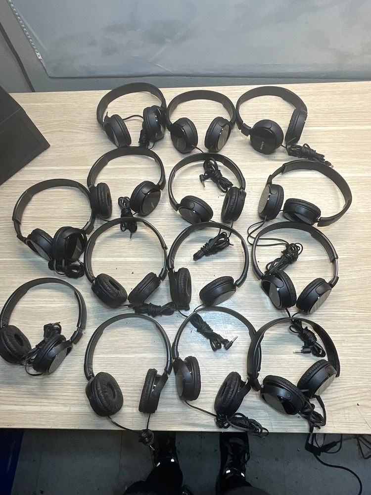 Enjoy your music with these Sony MDR-ZX110NC headphones, perfect for portable audio. The headphones have a headband fit design with ear-cup (over the ear) earpiece design, providing a comfortable and secure listening experience. The leather cushions ensure a comfortable fit, while the foldable design makes them easy to store and transport. These headphones have a closed-back feature, providing a clear and immersive sound experience. The L-shaped plug ensures a secure connection, while the stereo sound enhances the overall listening experience. The Sony MDR-ZX110NC headphones are a great addition to your music collection.///this lot of 14 units are PREOWNED ‘ see images //