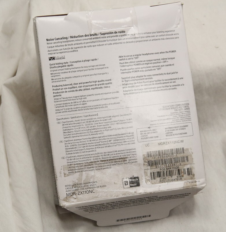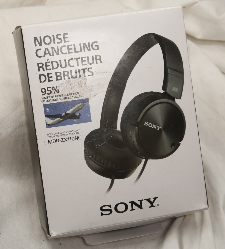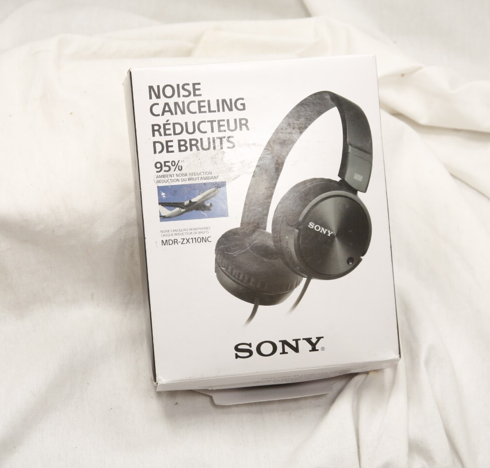 Sony MDR-ZX110NC Wired Over the Ear Headphones - Black This is a pair of noise canceling headphones. They are black and are wired. They have not been tested, because even though the item is open box it still has all of its original packaging and seller was unable to test without opening package further. The box shows evidence of previous stickers and a few tears, but the seller has no reason to suspect that the headphones are damaged.