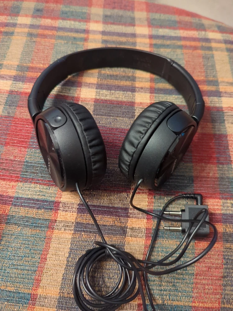 Experience high-quality sound with these Sony MDR-ZX110NC headphones. With a driver size of 30mm, these headphones have a frequency range of 10Hz - 22kHz, and are designed with double earpieces for maximum comfort. They come in a sleek black color and were manufactured in the 2020s, making them a modern and stylish choice for anyone in need of headphones. These headphones are suitable for studio monitoring, DJing, and live monitoring, and feature Bluetooth wireless technology for easy connectivity. They also come with a range of features including echo cancellation, noise isolation, ambient sound mode, volume control, and a rechargeable battery. The headphones are foldable and have closed-back cups for added convenience and portability. Get your hands on the Sony MDR-ZX110NC headphones for an immersive audio experience today!