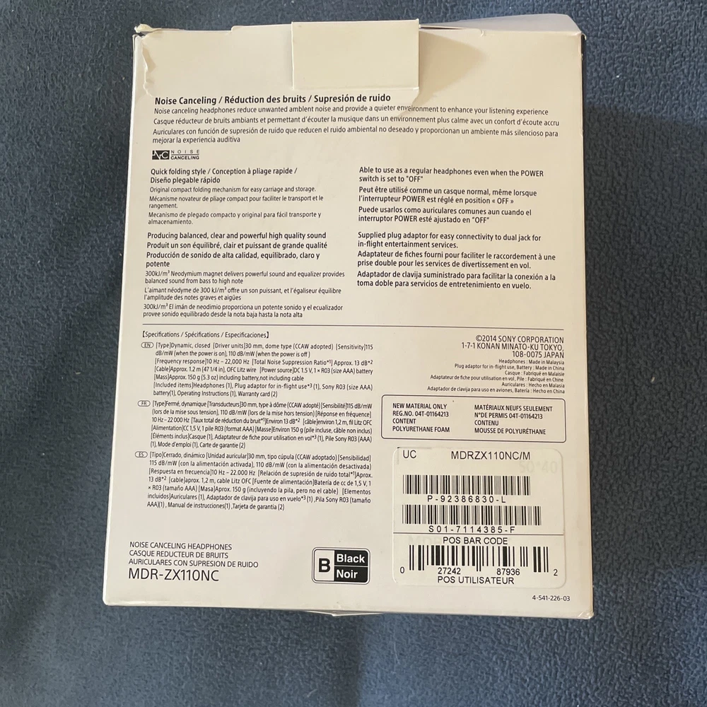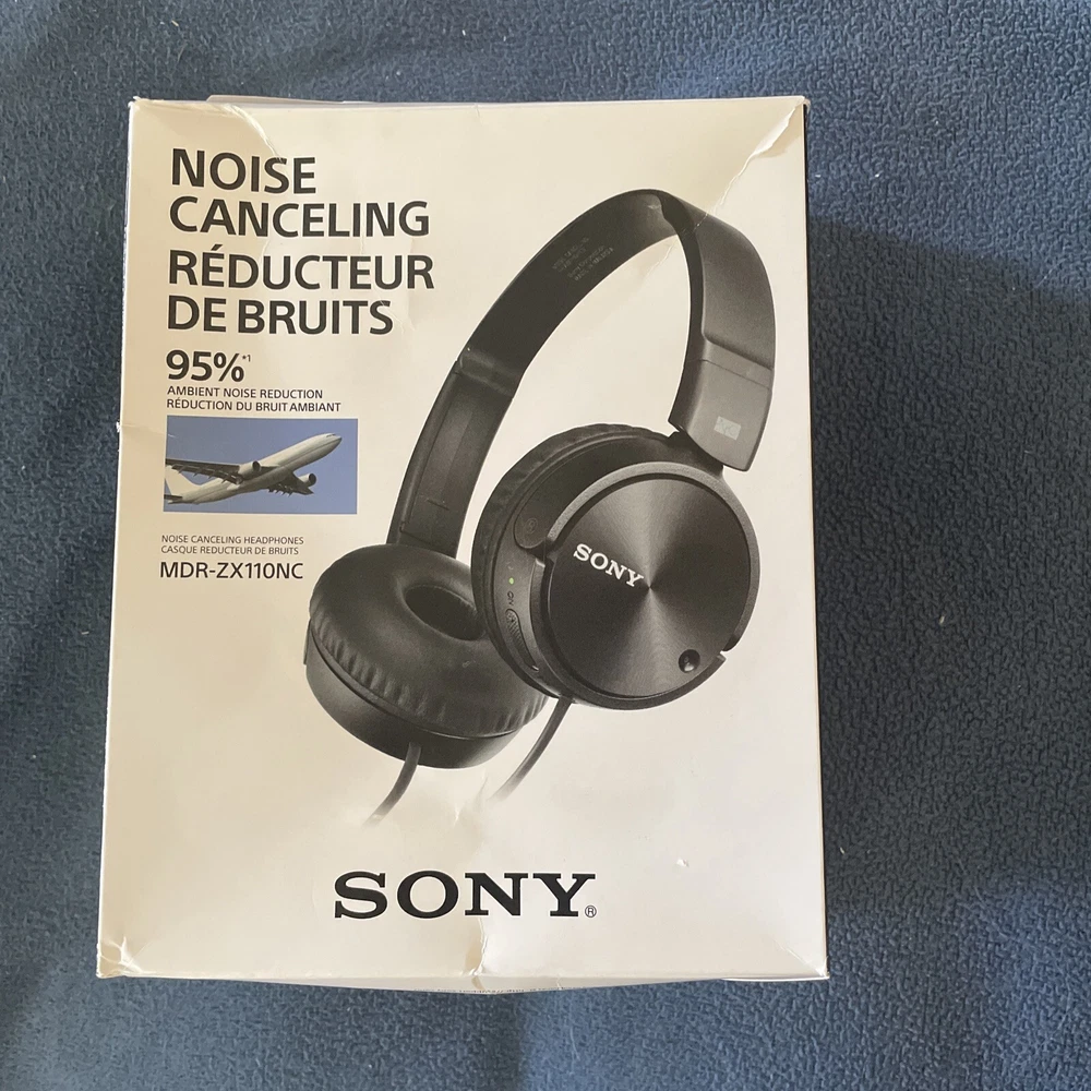 Immerse yourself in your favorite music with these Sony noise-canceling headphones. Designed with comfort and convenience in mind, these headphones feature leather cushions and an adjustable headband that fits securely on your head. With its built-in rechargeable battery and on/off switch, you can easily use these headphones on the go or at home. Enjoy powerful and clear audio with extra bass and noise-canceling technology, perfect for any music lover. These black Sony headphones have a wired connectivity and come in a new box. Ideal for use with home audio and hi-fi systems, portable audio devices, and mobile/cellular phones. Get ready to experience high-quality sound with these headphones.