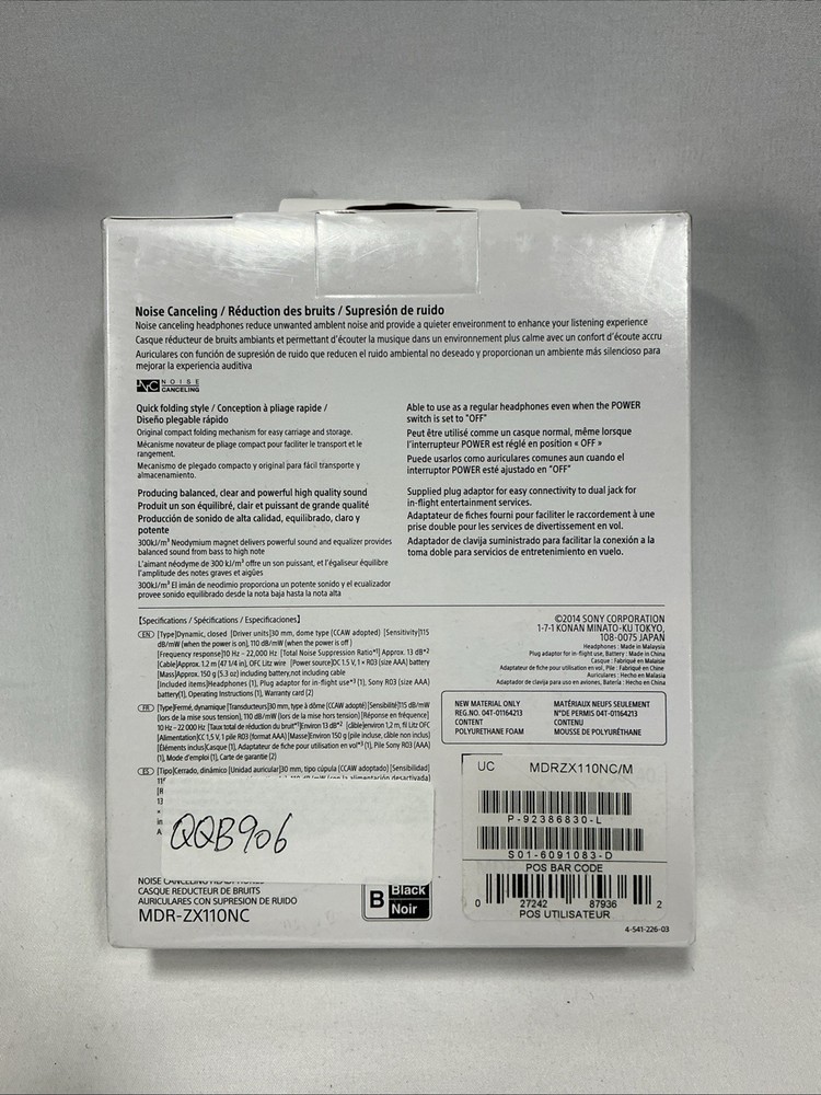 | _desc_ | The Sony MDR-ZX110NC over the ear noise canceling headphones are designed with comfort and convenience as top priorities. These headphones can effectively cancel out as much as 95% of the ambient noise that surrounds the listener. By analyzing background sounds and filtering them out seamlessly at the flip of a switch, these studio accessories can make it easier to focus all of your attention on the most important sounds. In addition to their noise-canceling abilities, they can provide excellent sound reproduction for your favorite musical tunes. They are constructed with lightweight materials and feature dynamic 1.18 drivers and a long Y shaped cord that measures just under 4 feet. This comfortable headset has an effective circuit design that uses a small microphone to detect the noise coming in and then emit a canceling signal to provide optimal clarity for the sounds you want to hear most. They are very effective in many kinds of different situations. Using them when traveling or studying can make it easier to tune out surrounding chatter. Musicians in the studio may appreciate these audio headphones as well since they can be able to live track a song and still hear the rest of the mix. The Sony MDR-ZX110NC noise canceling headphones have a quick fold design, which allows them to rotate, lie flat, and be extremely portable. They are adjustable to comfortably fit any head size, and the earphones can snugly encase your ears in an ambient free echo chamber. They utilize Neodymium magnets to deliver up to 300 kilojoules per cubic meter, which helps provide excellent bass, mid, and treble frequency response. You can get a balanced, tone rich sound with these audio accessories. There is a power switch on the side of the headphones that activates the battery circuit to drive the noise-canceling process; however, even when powered off they still function as regular headphones with over ear noise isolation. The noise cancelling functions of this headset are powered by a single AAA battery. Depending on the type used, the function can have a lifespan ranging from 40 to 80 hours of continued use. The indicator light will blink or go off if it needs to be replaced. To change the battery, simply open the side compartment for quick access. These dynamic cancellation earphones have a 30 millimeter, dome type driver unit. At 1 kHz they have an impedance of 220 ohms when powered on and 45 ohms when powered off. They have a power handling capacity of 40 milliwatts with a full frequency response ranging from 10 Hz to 22 kHz. They can suppress approximately 13 decibels of noise when activated. This headset has a standard auxiliary input jack in addition to a double jack attachment that works for airplanes. These Sony MDRZX110NC over ear headphones can be great for reducing many kinds of background noise. They can help you concentrate and increase the sound quality when listening to music. You can use them with all kinds of electronics, including a home theater, stereo, iPod, or mobile phone. They can be great gift accessories for many audiophiles, and with their sleek, black design they may also be very stylish. These quality Sony headphones could be useful for many people and are durable for frequent use. |