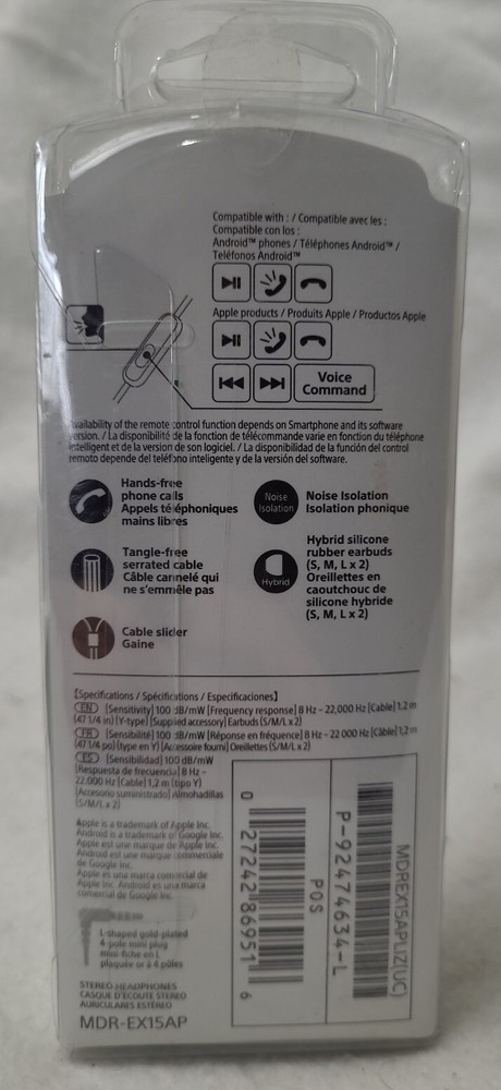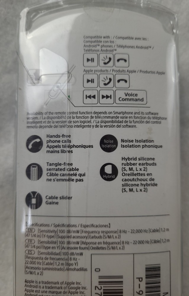 Sony blue in ear wired stereo headphones with mic for smart phones.....