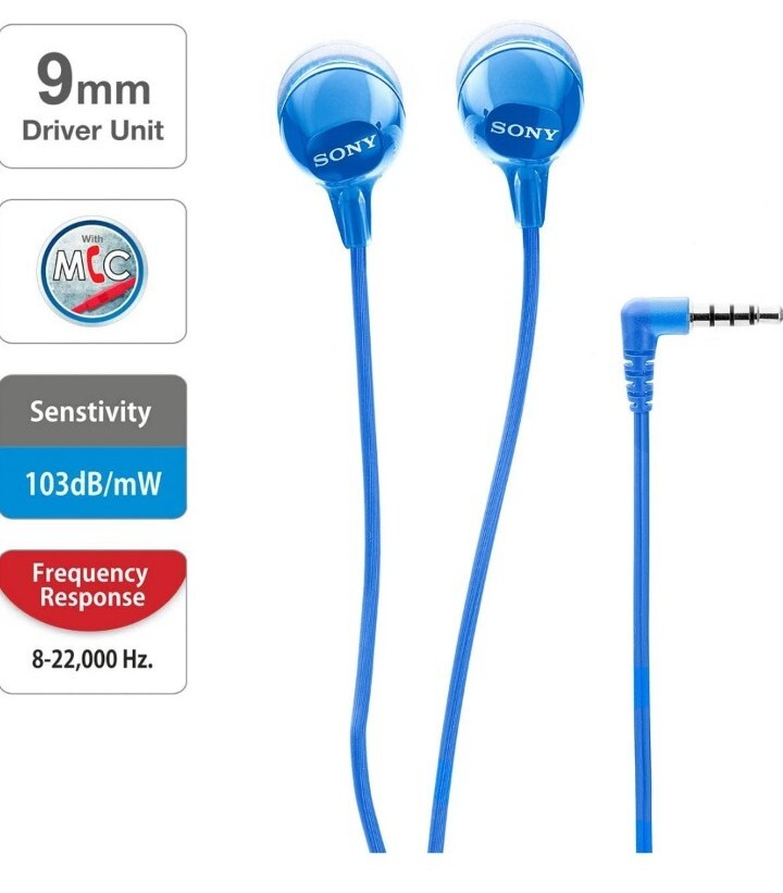 Sony blue in ear wired stereo headphones with mic for smart phones..