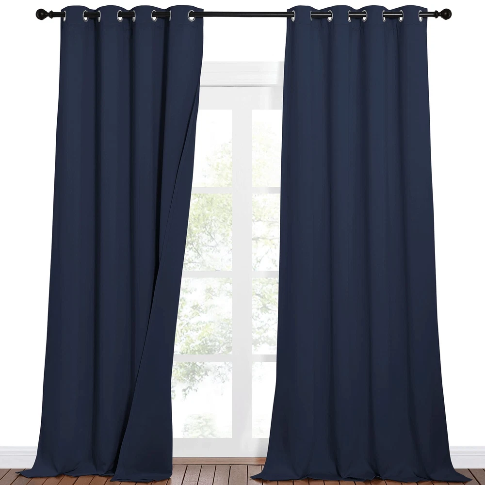 NICETOWN Sound Reduction Long Curtains for Sliding Glass Door, 3 Layers Thermal Insulated Full Blackout Drapes for Kids/Boys/Nursery/Home Recording Studio (Navy, 52" Wide x 95" Long, Set of 2) READY MADE: 2 panels per package. Each Curtain with 1.6" diameter rings measures 52" wide x 95" long (Total width of 2 panels is 104"). 3 layers together: both sides as front and back are navy & 1 detachable felt fabric lining in the middle. NOISE REDUCING: Detachable felt fabric liner in the middle which makes the effect of absorbing sound is 2.5 times higher than the ordinary curtains. So that minimize the effect of noise on you at any time. But these curtains are not noise cancelling, but noise reducing. The more folds the better the noise dampening. 100% BLACKOUT: Curtains are made with 2 layers triple weave fabric and 1 layer detachable felt fabric liner. Thick enough to completely keep out the 100% SUNLIGHT and UV RAY. Offering you a real dark environment, a great choice for any room you would like to turn day into night. THERMAL INSULATION: 3-in-1 curtains can balance room temperature by insulating against summer HEAT and winter CHILL meanwhile protect PRIVACY. Help you to reduce energy costs. Tips: You will need a rod that is strong with a center support to support the heavy curtains. EASY CARE: Good quality finishing will withstand years of use. Detach the felt liner before machine wash. Machine washable and Wash the water temperature below 86℉. Mild detergent no bleaching. Low-temperature ironing. No matter where you live, California, Texas or even Florida, if you have the annoying sunshine of torture and street noise, and need a completely dark and quiet sleep environment, you can choose 3-in-1 blackout curtains with noise absorbing liner. Different from other regular blackout curtains, NICETOWN Thermal Insulated Blackout Lined Curtains go beyond that mundane function and provide the best benefits. FIT NICELY: Package includes 2 panels. 1.6" Grommet fits various standard or decorative curtain rod/pole. Due to grommet design, remember they narrow when you put them on a pole. Become shorter because of sewn into a 3-inch header with grommets. Particularly suitable: living room, kitchen, bedroom, nursery, villa, hall, and department, etc. MULTIFUNCTION: Draperies are thick enough to block out unwanted light completely and reduce some noise, encouraging day sleepers and the ones who have trouble falling asleep have a good sleep. The detachable felt fabric liner is in the middle of the 3 layers. Maximum absorb the annoying noise and create a peaceful environment. Not only that but also make your resting zone truly blissful. They would be perfect for any home theater and supply you with the enjoyment of watching TV in real darkness. The sophisticated designs allow you to brighten your home decor, making your living space more lively. Protect your furniture, floors, and artwork from the ravages of the sun. Lined Grommet Curtains have kept the room much warmer in winter and also block a lot of heat during summer, relieving the strain on home heating and cooling while reducing energy budget. TIPS: Detach the felt liner before washing. Machine washable, recommended hand wash or dry cleaning. Wash the water temperature below 86℉. NOTE: Due to different screen displays, the color of the actual item may vary slightly from the above images. SHIPPING - We offer FREE shipping on all orders! - We ship within 3 business days of payment, usually sooner - We use a selection of shipping services such as UPS, FedEx, USPS etc - We only ship to the lower 48 states, no APO/FPO addresses or PO Boxes allowed International buyers – please note: Import duties, taxes, and charges aren't included in the item price or postage cost. These charges are the buyer's responsibility. - Please check with your country's customs office to determine what these additional costs will be prior to bidding or buying. - We have confidence in our products, but if you are not fully satisfied please contact us within 30 days of purchase and you will get full refund. * Order Cancellation Policy ** You can return a product for up to 30 days from the date you purchased it. 1. The seller reserves the right to cancel the special case only due to eBay cancellation fee. 2. The decision of seller is the final. 3. The seller will respond to the cancellation request within 2 business days. Please wait for the result of cancellation. 4. In case the cancellation is not completed by some reasons, the buyer can follow the options below to get the refund. 4.1 The buyer can reject the item when it arrives. 4.2 The buyer can send the item back to the seller within 30 days If the buyer receives item (USA Shipment ONLY). The seller will provide the FREE return label to the buyer when the buyer opens " Return Item" case on eBay by using the reason as "Change my mind" ONLY. 5. When buyer has placed the order. The order will be processed and completed by automatic warehouse system within 5 minutes. In case that buyer sends the cancellation request after 5 minutes of placing the order, the request will be rejected. **Sending direct message to cancel the order is not allowed for every case.* Return Policy For the return case - If buyer would like to return the items for refund or replacement, please CONTACT SELLER to receive the free return label from seller. The refund or replacement will be processed with the tracking number of return label which is provided by seller only. The other ways of return which are not approved by seller will not be processed for the refund or replacement. CUSTOMER SERVICE - We try our best to make sure every customer is completely satisfied. - If there's a problem, feel free to message us! - We're happy to help.