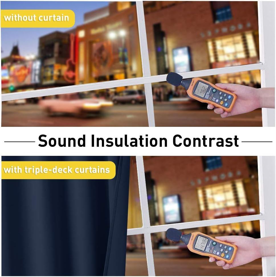 Sound Reduction Long Curtains for Sliding Glass Door, 3 Layers Thermal Insulated Full Blackout Drapes for Kids/Boys/Nursery/Home Recording Studio (Navy, 52" Wide X 90" Long, Set of 2) READY MADE: 2 panels per package. Each Curtain with 1.6" diameter rings measures 52" wide x 90" long (Total width of 2 panels is 104"). 3 layers together: both sides as front and back are navy & 1 detachable felt fabric lining in the middle. NOISE REDUCING: Detachable felt fabric liner in the middle which makes the effect of absorbing sound is 2.5 times higher than the ordinary curtains. So that minimize the effect of noise on you at any time. But these curtains are not noise cancelling, but noise reducing. The more folds the better the noise dampening. 100% BLACKOUT: Curtains are made with 2 layers triple weave fabric and 1 layer detachable felt fabric liner. Thick enough to completely keep out the 100% SUNLIGHT and UV RAY. Offering you a real dark environment, a great choice for any room you would like to turn day into night. THERMAL INSULATION: 3-in-1 curtains can balance room temperature by insulating against summer HEAT and winter CHILL meanwhile protect PRIVACY. Help you to reduce energy costs. Tips: You will need a rod that is strong with a center support to support the heavy curtains. EASY CARE: Good quality finishing will withstand years of use. Detach the felt liner before machine wash. Machine washable and Wash the water temperature below 86ā. Mild detergent no bleaching. Low-temperature ironing. No matter where you live, California, Texas or even Florida, if you have the annoying sunshine of torture and street noise, and need a completely dark and quiet sleep environment, you can choose our 3-in-1 blackout curtains with noise absorbing liner. Different from other regular one layer blackout curtains, NICETOWN Thermal Insulated Blackout Lined Curtains go beyond that mundane function and provide the best benefits. FIT NICELY: Package includes 2 panels blackout curtains. 1.6" Grommet fits various standard or decorative curtain rod/pole. Due to grommet design, remember they narrow when you put them on a pole. Become shorter because of sewn into a 3-inch header with grommets. Particularly suitable: living room, kitchen, bedroom, baby room, villa, hall, and department, etc. MULTIFUNCTION: Draperies are thick enough to block out unwanted light completely and reduce some noise, encouraging day sleepers and the ones who have trouble falling asleep have a good sleep. The detachable felt fabric liner is in the middle of the 3 layers. Maximum absorb the annoying noise and create a peaceful environment. Not only that but also make your resting zone truly blissful. They would be perfect for any home theater and supply you with the enjoyment of watching TV in real darkness. The sophisticated designs allow you to brighten your home decor, making your living space more lively. Protect your furniture, floors, and artwork from the ravages of the sun. Lined Grommet Curtains have kept the room much warmer in winter and also block a lot of heat during summer, relieving the strain on home heating and cooling while reducing energy budget. Item model number _Blackout Style Modern Number of Items 2 Pattern Solid Country of Origin China Package Weight 4.28 Kilograms Theme Blackout Opacity Blackout Inches Unit Count 1.0 Count Room Type Bedroom, Living Room, Home Office, Dining Room Batteries required No Material Polyester Top Style Grommet Model Name NTUSGMBLK3LSA2-52 Seasons Summer Lining Description Felt Included Components Shade included Curtain Form Drapes Indoor/Outdoor Usage Indoor Water Resistance Level Not Water Resistant Perfume Unscented Item Weight 9.42 pounds Size 52"W x 90"L (Pack of 2) Compatible with Rod Size 1.6 Inches Special Feature Thermal Insulated, 100% Blackout, Soundproof, 3 Layers Antibacterial treatment Thermal Hanging Method Grommet Color Navy Recommended Uses For Product Indoor Product Dimensions 90"L x 52"W Product Care Instructions Machine Wash Number of pieces 2 Shipping Fast shipping is very important for us. Our standard US shipping service is FREE. Your order will be shipped within 2-3 business days upon full payment received. Your order will be delivered within 2-3 business days after the handling time. We only ship to the confirmed PayPal address. We reserve the right to cancel any order for any reason at any time. We are not responsible for undeliverable addresses. Returns and payment We offer a 30 days return policy from checkout winning date. We allow only PayPal as payment method FeedBack Your feedback very important to us, after you get your package and you are satisfied with our service please leave us positive feedback If you have any problem with your order / any questions please before leave any type of feedback For any questions, using eBay contact system Please visit our eBay store to check out other items for sale! Thank you for shopping at our store.