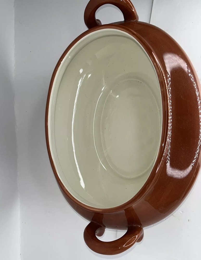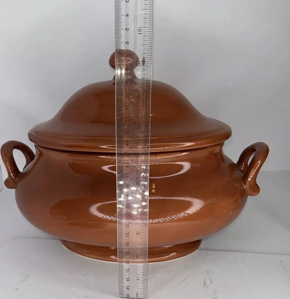 This beautiful brown ceramic soup tureen and lid combo from Pottery Barn's Sausalito collection is the perfect addition to your kitchen decor. Crafted in China, this high-quality piece is perfect for serving soups and stews with a touch of elegance. The lid keeps the food warm and the tureen adds a rustic touch to your table setting. The pattern is exquisite and the color is rich, making it a great conversation piece at your dinner parties. Get this unique piece today and enjoy your favorite soups in style!