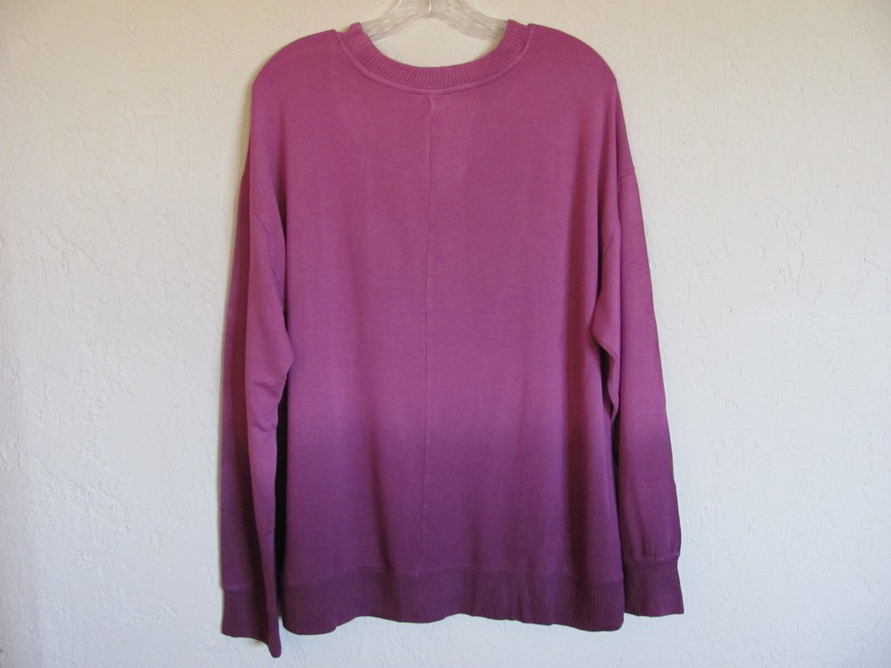 This sweater is incredibly soft and comfortable with a perfect relaxed fit. The ombre dye adds a stylish touch, and the ribbed details give it a polished look. The sizing is accurate, and the fabric drapes beautifully. Love how lightweight yet cozy it feels—great for layering or wearing on its own!