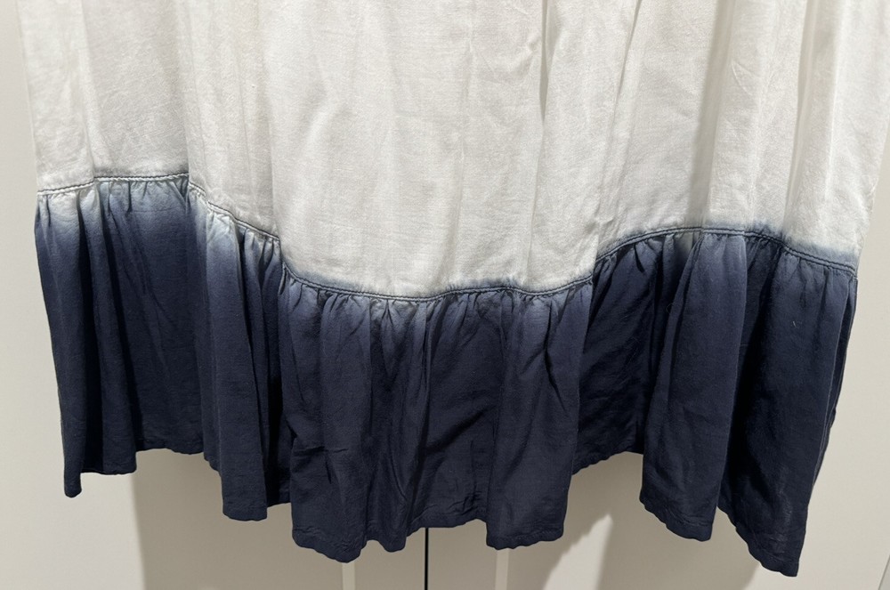 Splendid White & Blue Dip-Dye Ruffle Dress Size XL Measurements Put to pit: 21" Length from neck to bottom: 34.5in Fully lined - adjustable straps - super comfy and flattering!