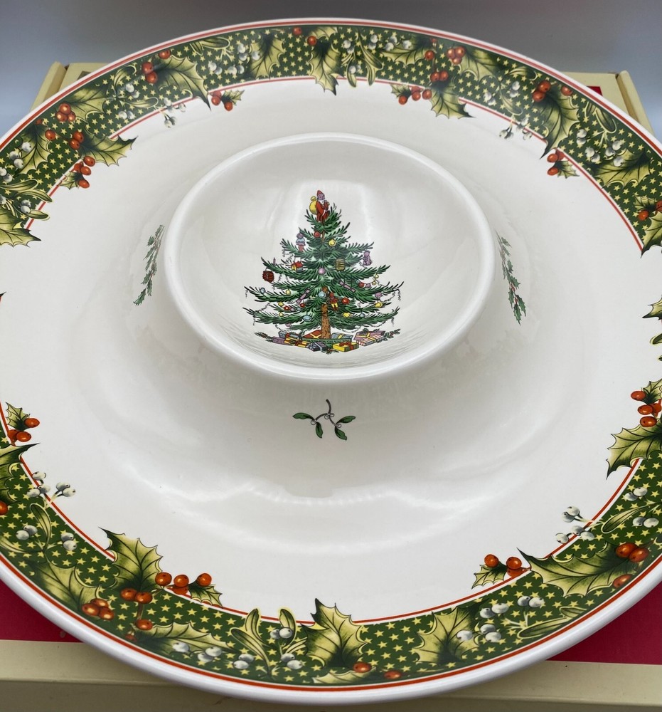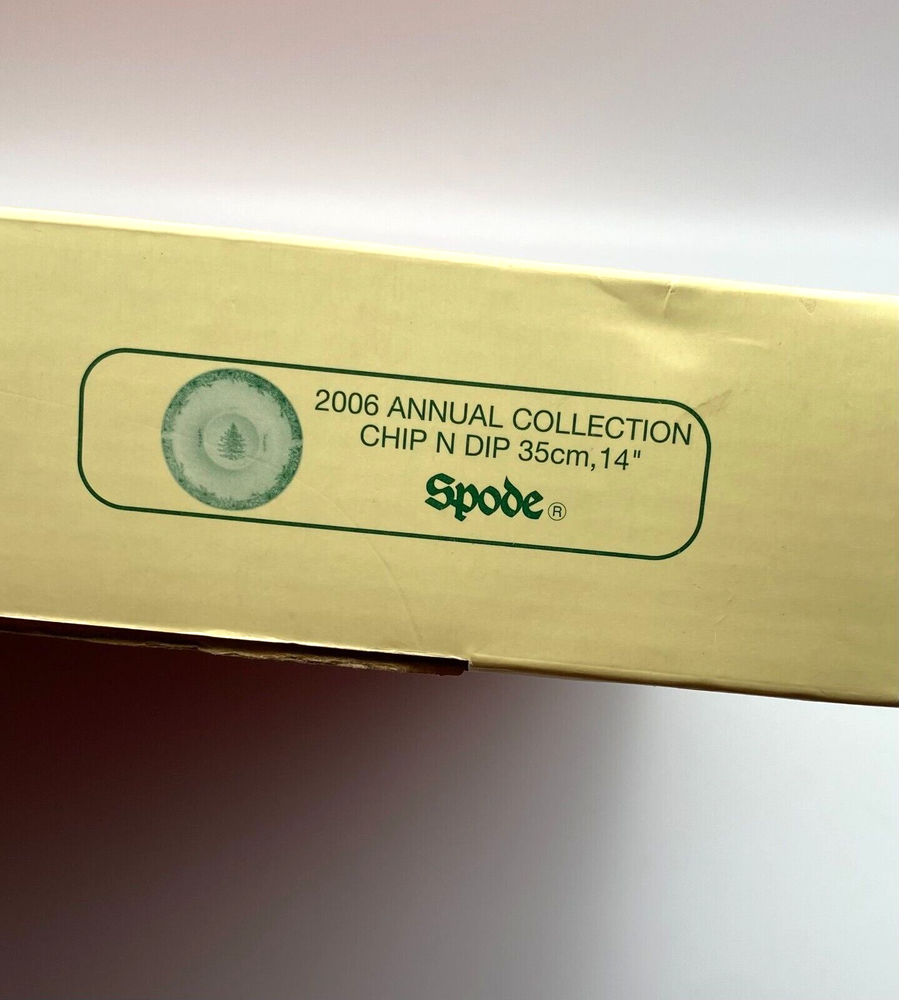 Spode World Of Christmas Tree Chip & Dip Dish Tray 14" Annual Garland Border Great condition - No chips or cracks - Original box These items come from a smoke-free home. All the pictures I take are for the item you will receive. We took extra care in packing this item for a safe delivery to you. I do combine shipping on most items. INTERNATIONAL RETURNS WILL NOT BE ACCEPTED PLEASE SEE MY STORE FOR MORE ANRI, ART GLASS, BARBIE AND KEN, CHRISTMAS, CLOTHING, DEPT 56, DISNEY, DOLLHOUSE FURNITURE & ACCESSORIES, GLASSWARE, HALLMARK ORNAMENTS, PUZZLES, ROYAL HAEGER/HAEGER, SHOES, VINTAGE CERAMIC & POTTERY, VINTAGE DOLL CLOTHES, VINTAGE TOYS, (WDCC) WALT DISNEY CLASSICS COLLECTION, AND OTHER VARIOUS ITEMS. Item(s) must be returned in same condition as shipped. Money back guarantee covers your purchase price. No shipping on weekends or holidays. Thank you for looking at this item.