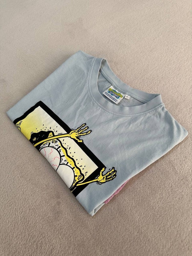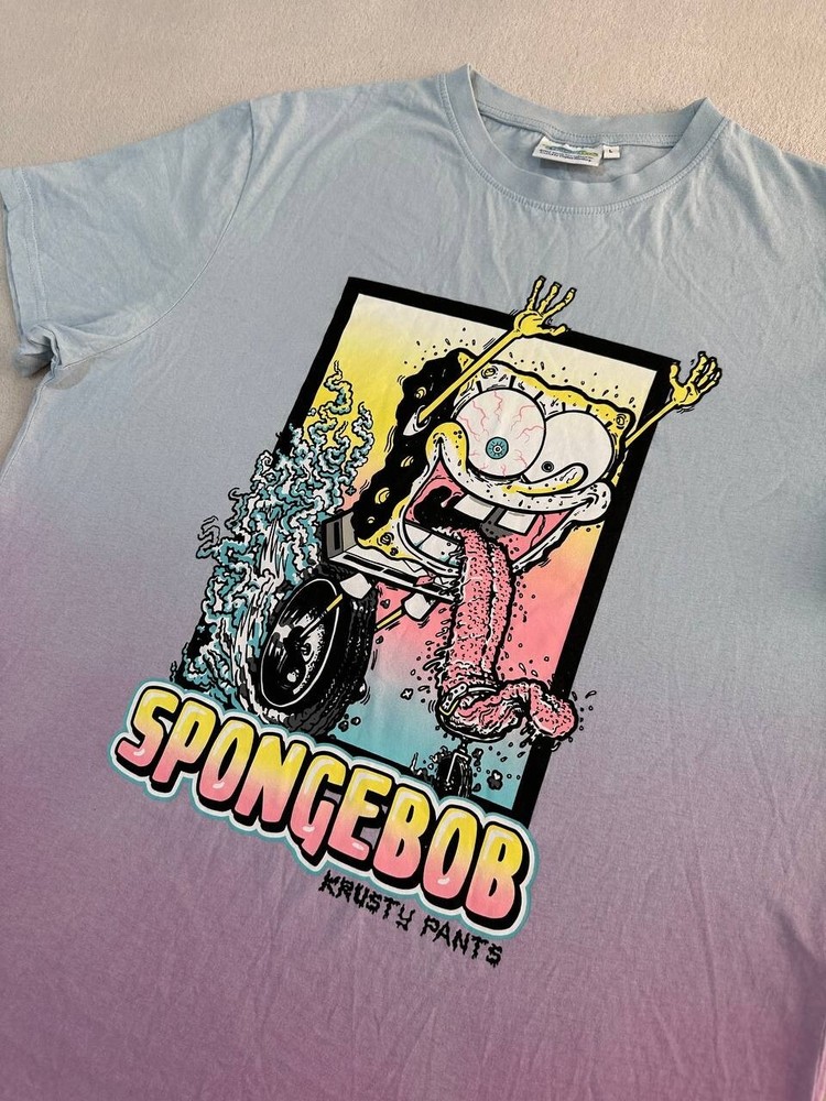 SpongeBob T-Shirt Krusty Pants Dip Dye Blue Pink Size L Unisex Graphic Tee Features: Size: L (Large) Front Graphic: SpongeBob "Krusty Pants" Colour: Light Blue to Pink Gradient Material: Soft and breathable cotton blend Brand: Official Nickelodeon Merchandise Measurements (approx): Chest (pit to pit): 22.5 in / 57 cm Length: 28.5 in / 73 cm Shoulders: 19.5 in / 50 cm Sleeve Length: 8 in / 20 cm Condition: Gently used in good condition . 📦 Ships fast and folded with care. 👕 Stored in a smoke-free, pet-free environment. Please review all photos and measurements before purchasing. Feel free to send a message if you have any questions!