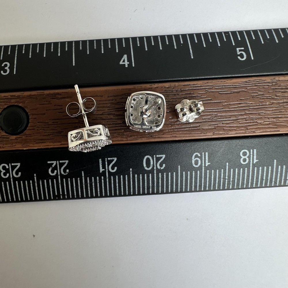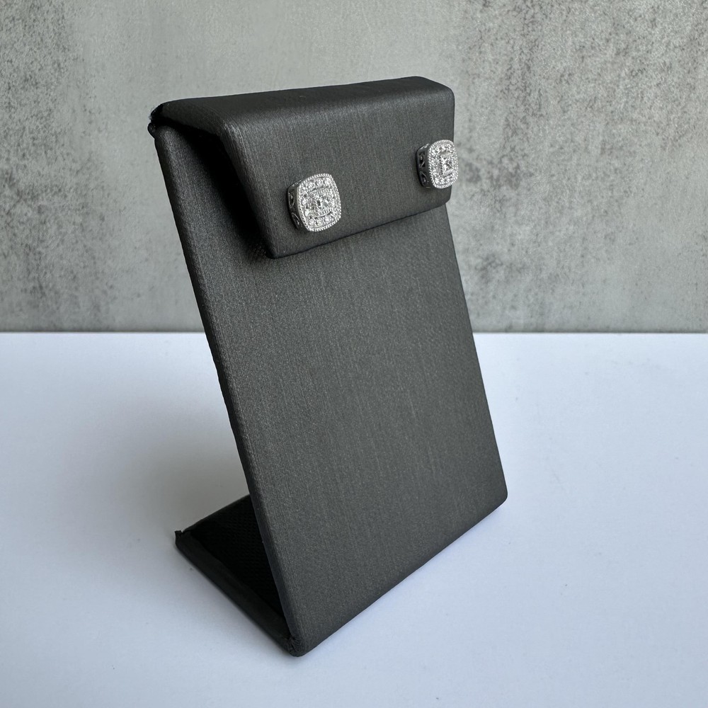 Title Square Shaped Diamond Halo Studs in 14kt White Gold - 0.34ctw Diamonds, New $717.00 PRODUCT DESCRIPTION Add a touch of sophistication to your jewelry collection with these stunning Square Shaped Diamond Halo Studs in 14kt White Gold. Featuring a total of 0.34 carats of GH SI natural princess cut and round diamonds, these earrings are perfect for any occasion, offering both elegance and sparkle. Craftsmanship and Quality: Crafted in 14kt white gold, these halo studs showcase an exquisite blend of princess cut and round diamonds, surrounded by a halo that enhances their brilliance. The earrings weigh 2.5 grams and are designed with beautiful milgrain detailing and a unique side profile. Features: Sparkling Diamonds: The earrings feature a total of 0.34 carats of GH color, SI clarity natural diamonds, combining princess cut and round shapes for a stunning effect. Elegant Design: The square-shaped design with a diamond halo and intricate milgrain work adds a vintage touch to these modern earrings. High-Quality Materials: Made from 14kt white gold, these earrings offer durability and a luxurious appearance. Secure Fastening: The push back closure ensures a secure and comfortable fit. New Condition: These earrings are in new condition, making them an ideal gift or a beautiful addition to your jewelry collection. Additional Information: These Square Shaped Diamond Halo Studs in 14kt White Gold are not just earrings; they are a symbol of refined taste and elegance. Whether you're looking for a special gift or a versatile addition to your own collection, these earrings are sure to impress. Shipping Policy Free domestic shipping via USPS Priority Mail on all orders. Processed within 1-2 business days, arrives in 1-4 days typically. Secure packaging Enjoy quick, secure, and free delivery for your fine jewelry purchases! Questions? Contact us on eBay. Return Policy All sales are final. No returns/refunds/exchanges. We kindly ask you to review items carefully and reach out with any questions before purchasing for a satisfying experience. About Us Dreamline Jewelers offers a curated selection of fine jewelry, merging timeless elegance with modern design. Our commitment to quality, authenticity, and customer satisfaction is unwavering. Each piece is carefully selected for its unique beauty and craftsmanship, ensuring a luxurious addition to your collection. We pride ourselves on exceptional service, secure transactions, and swift, insured shipping. Whether you're commemorating a special occasion or indulging in everyday luxury, Dreamline Jewelers is here to make your dreams come true. Explore our collection and discover the perfect piece to cherish and adore. Powered by