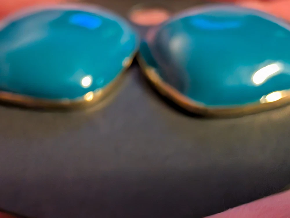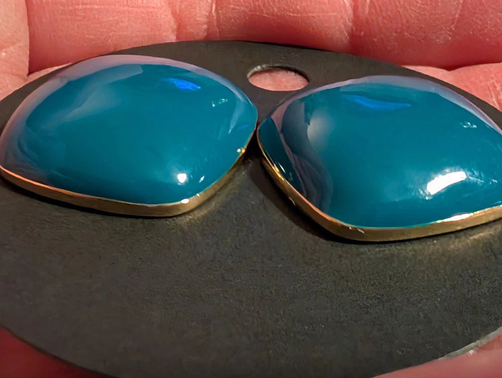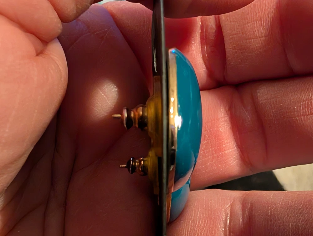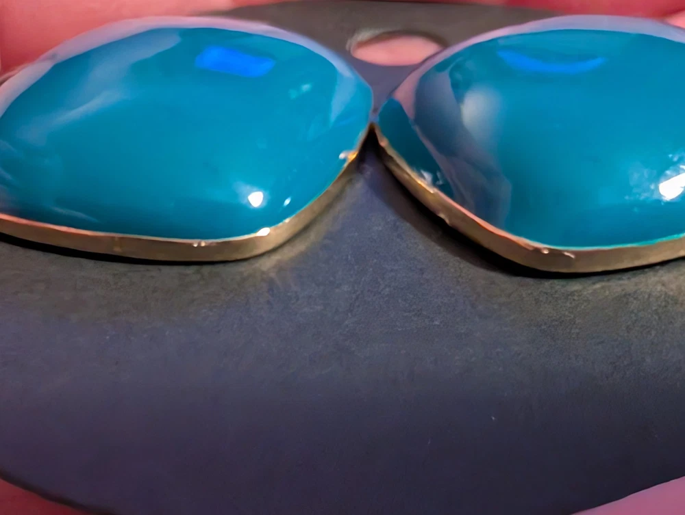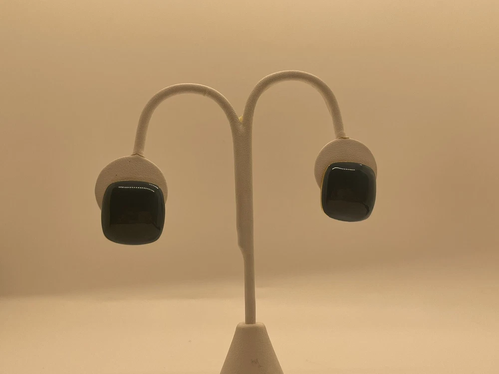 This is a nice pair of Square Stud Earrings Blue Green Gold Tone Rim Please view all photos to see approximate measurements and different views. Good pre-owned condition. The colors may vary slightly depending on lighting and/or computer monitor. Please use the zoom tool to take a close look at the piece. Pictures are part of the description. Measurements are shown in the pictures. If you have any questions about the product, please contact MsVix. We are happy to answer any inquiries. Thank you for being the best part of our business.
