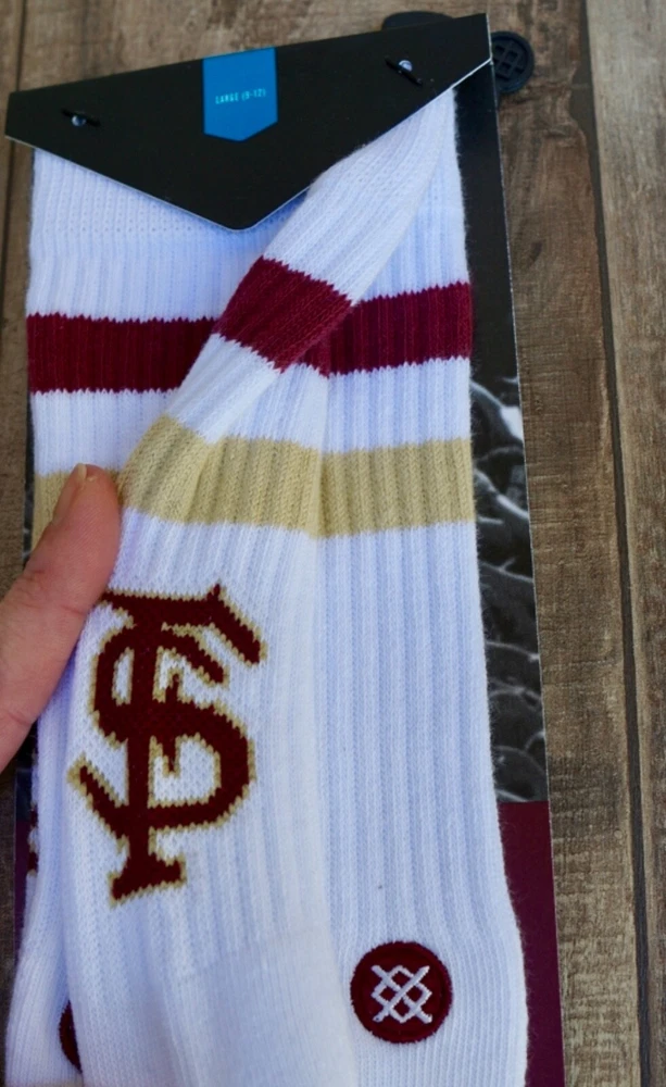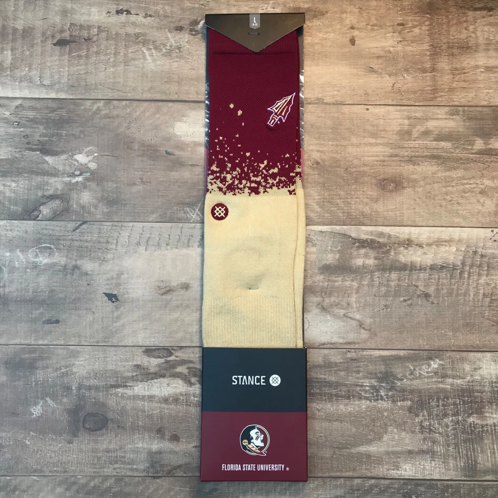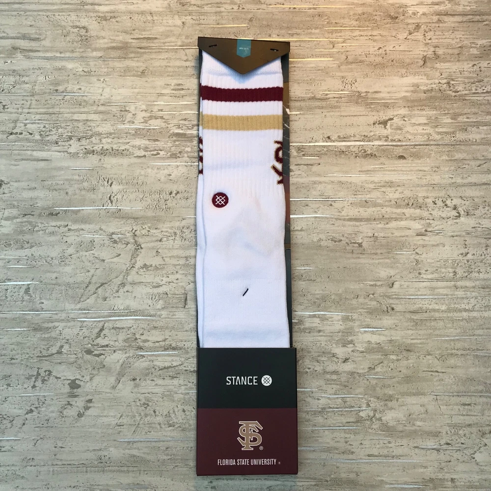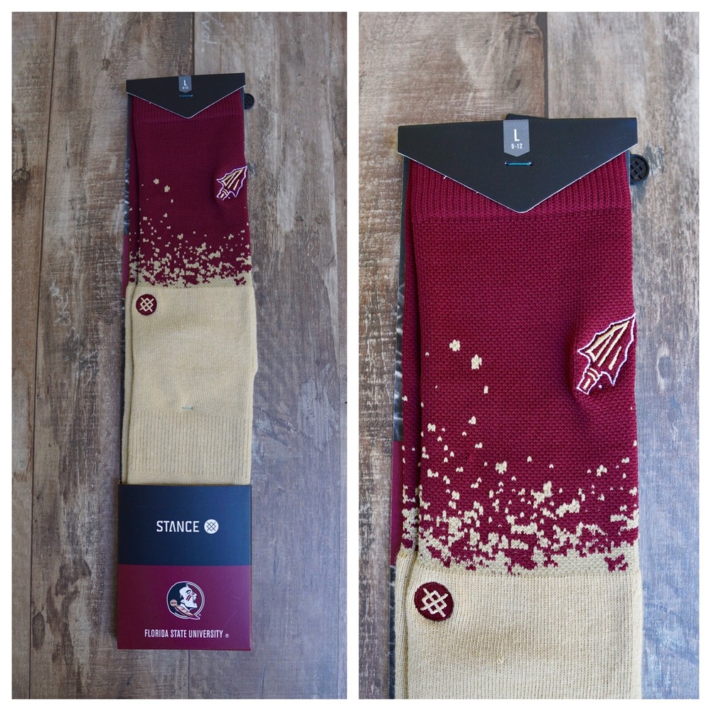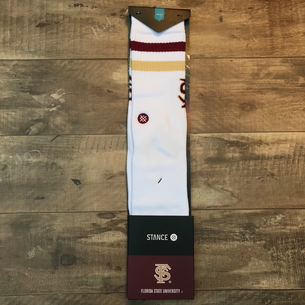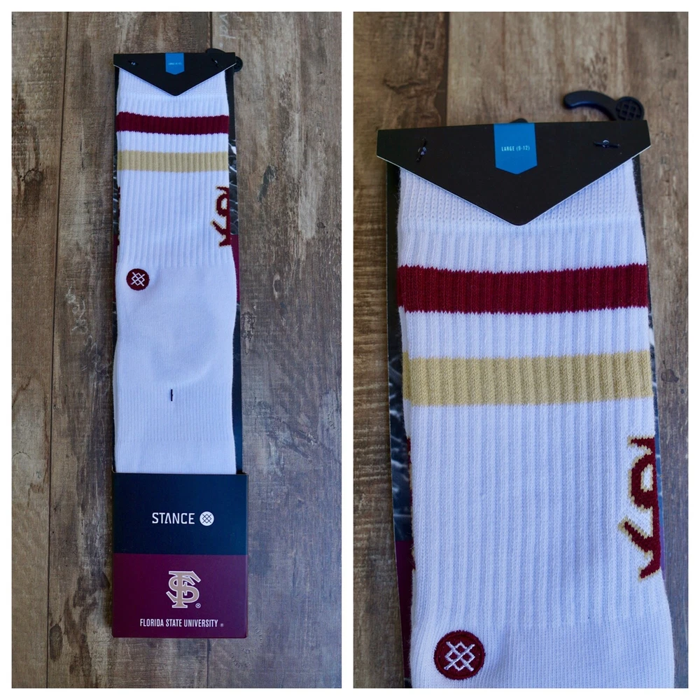 Brand new Stance FSU Seminoles Crew Socks Florida Sate University Men’s Size Large 9 - 12 choose style: Florida State Dip - Garnet/Gold (Tan Khaki) Noles - White 5699, 6550, 91, 9455 #4, #16