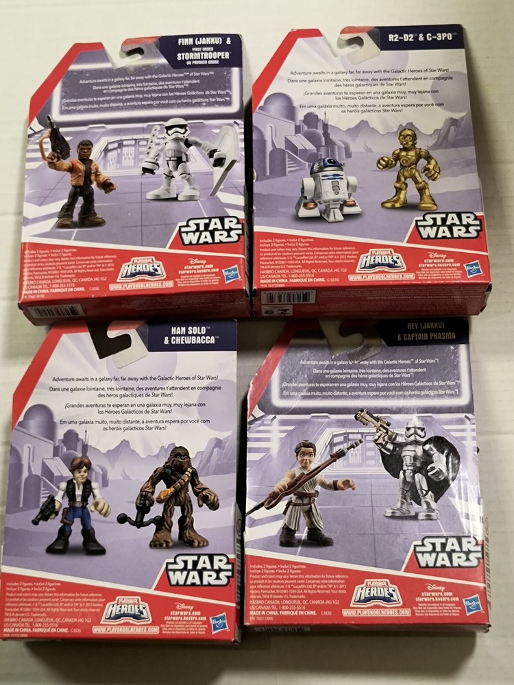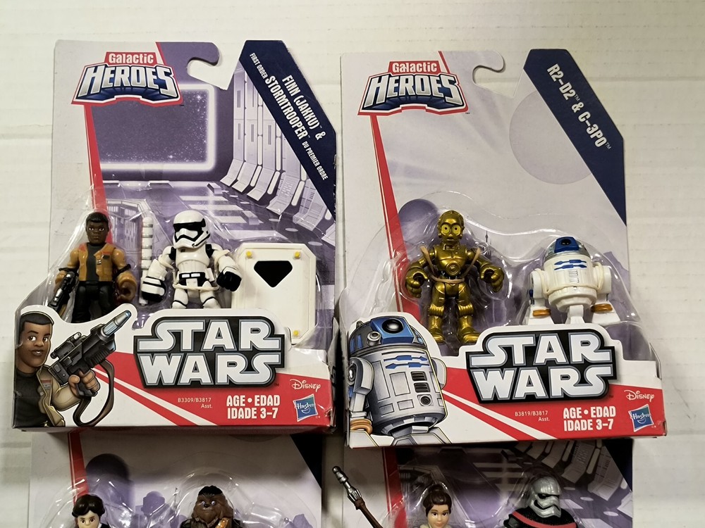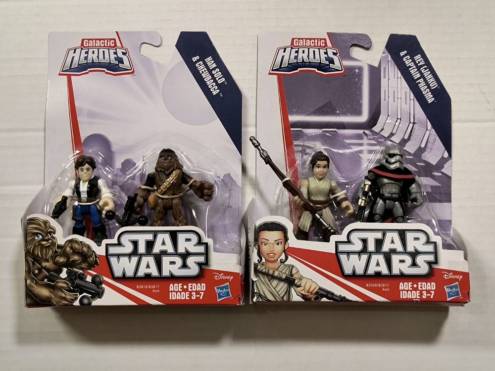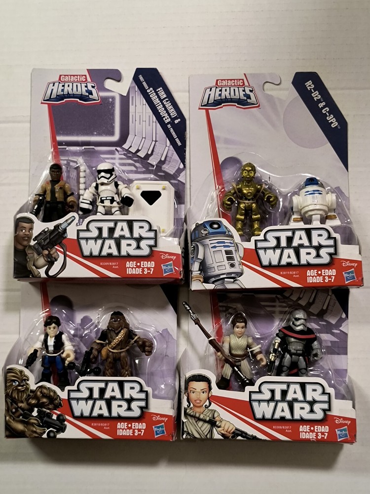 Please read entire description. Very important information provided. All items are sold "As-Is", no returns accepted. Make sure you check out my other listings! Have some great, rare selections! Feel free to message any inquiries! Hasbro Playskool Star Wars: Galactic Heroes! Lot of four (4) sets containing eight (8) characters! Includes: Rey Jakku & Captain Phasma R2-D2 & C-3PO Finn(Jakku) & First Order Stormtrooper Han Solo & Chewbacca ! All brand new, factory-sealed! Great as a gift of special addition to a collection of a huge Star Wars fan! Thank you. 😊 Payment: All payments due immediately upon closings of auction/ Buy-It-Now! If payment can't be made in a timely manner, this item will re-list; a non-payment claim will be filed (which goes into your account, leading up to indefinite suspension); and you will be blocked from future purchases. Shipping: USPS w/delivery confirmation. I ship within 2 business days once payment clears, so the sooner payment is made, the sooner I will ship . Tracking numbers are provided for every purchase. Combined shipping. (Prices vary. Inquire first .) If you'd like to purchased multiple Buy-It-Now items, please add them into your "cart" & request for a total for one invoice BEFORE purchasing. Cannot give partial refunds if you pay before receiving one invoice with the shipping discount from me. *Only shipping within the US (no CANADA/ HAWAII/ ALASKA). * NO INTERNATIONAL SHIPPING OR MILITARY BASES AT THIS TIME. NO RETURNS! PLEASE ASK QUESTIONS PRIOR TO PURCHASING. IT IS VERY IMPORTANT THAT YOU ASK ALL QUESTIONS BEFOREHAND, SO THERE ARE NO MISUNDERSTANDINGS. NO RETURNS! PLEASE ASK QUESTIONS PRIOR TO BIDDING. THANKS... *Please note that all items are thoroughly observed prior to shipping, so you will receive your purchase in the same condition as stated/ pictured.*