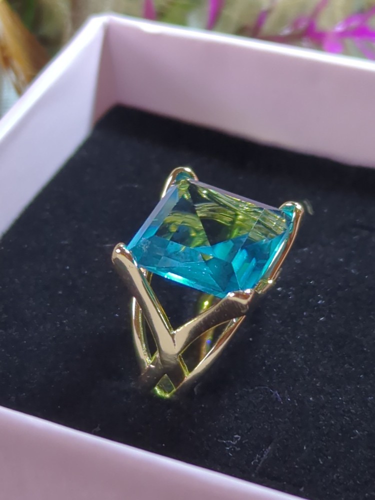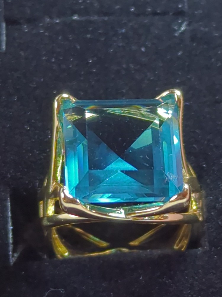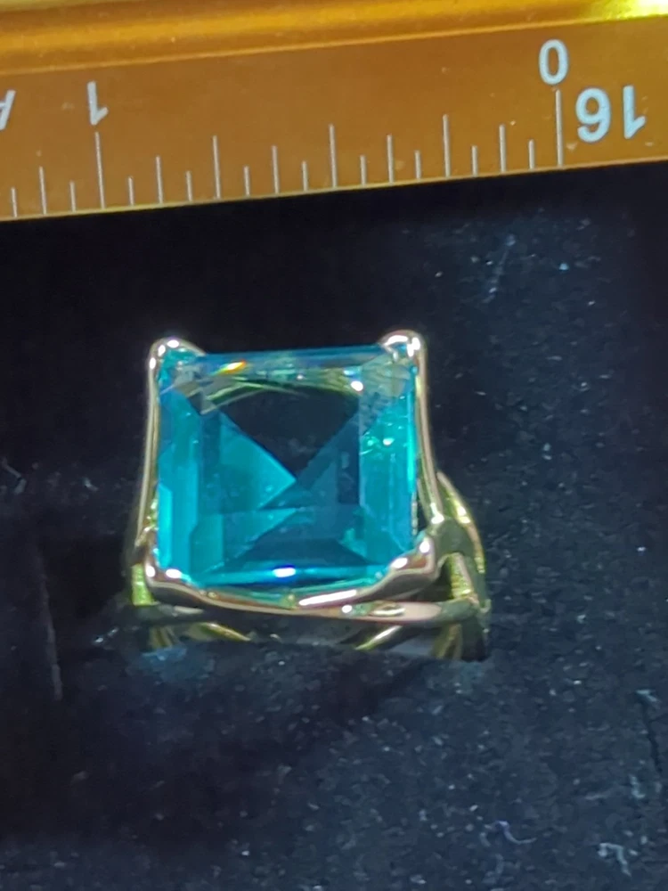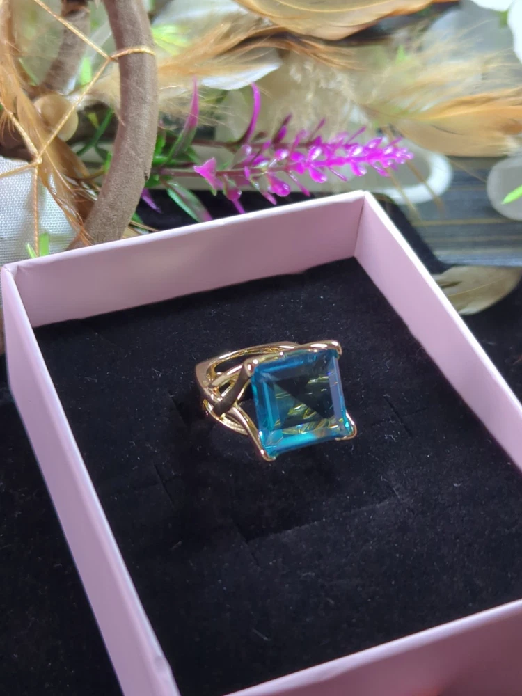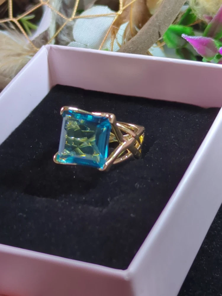 The Sterling 925 Size 7 Gold Dipped Ring with a Large Square Baby Blue Caribbean Ice Topaz is a stunning piece of fine jewelry. With a square shape main stone and a matching square shape metal purity, this ring is a unique and elegant choice. The gold dipping adds a touch of luxury to the silver metal, while the beautiful blue topaz stone adds a pop of color. Perfect for those who appreciate a combination of sophistication and style in their jewelry collection.909.