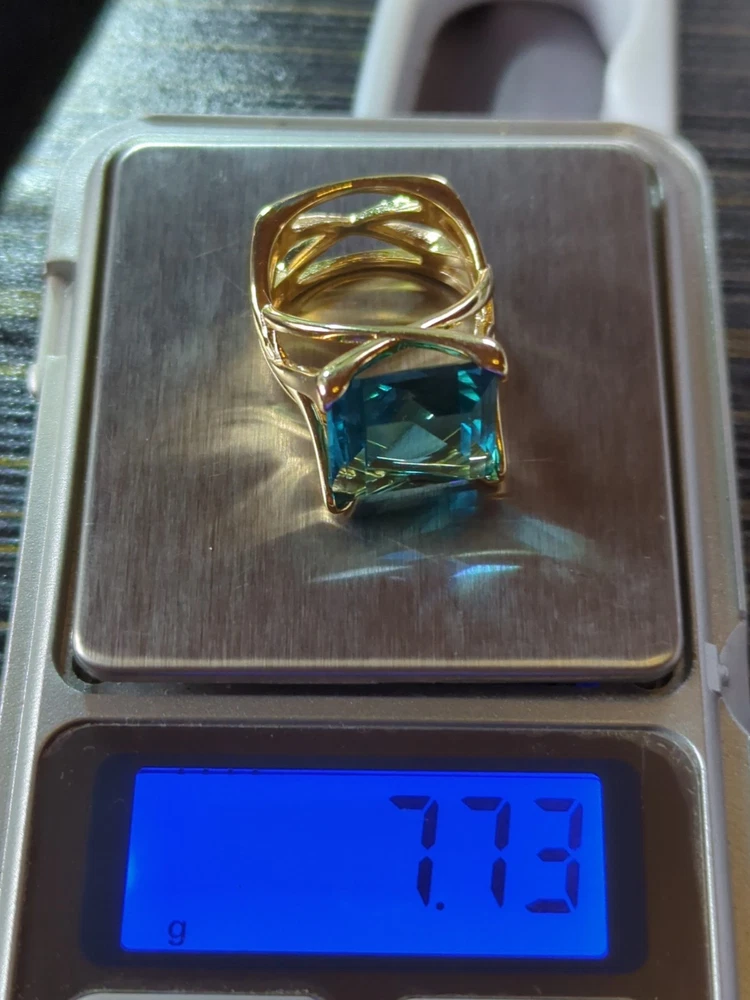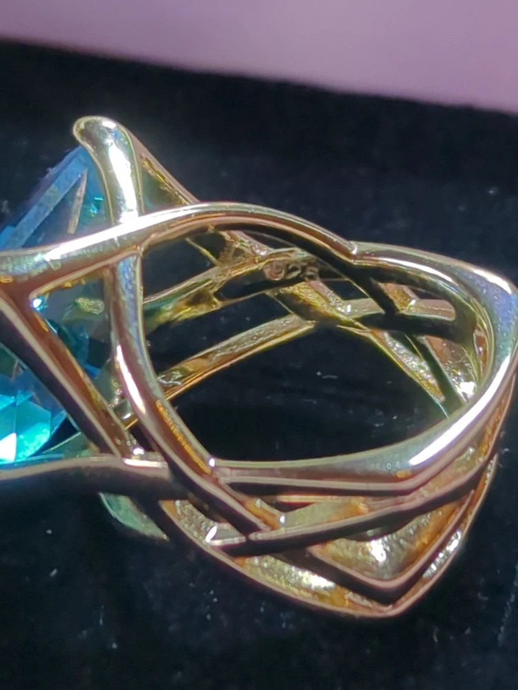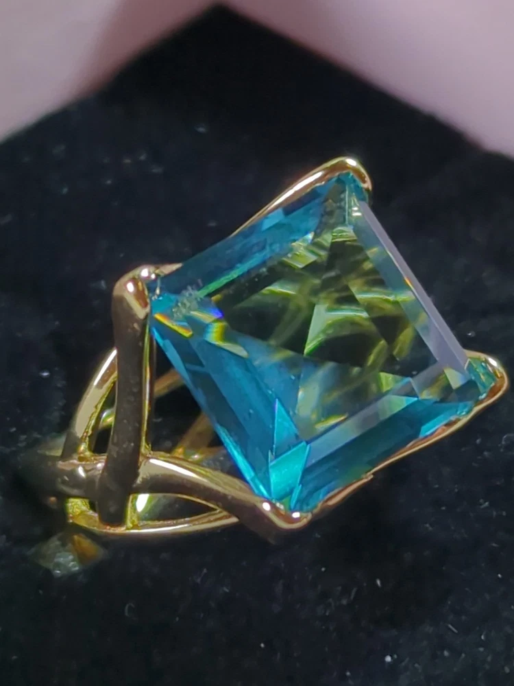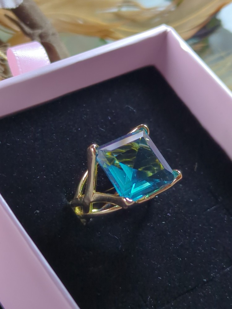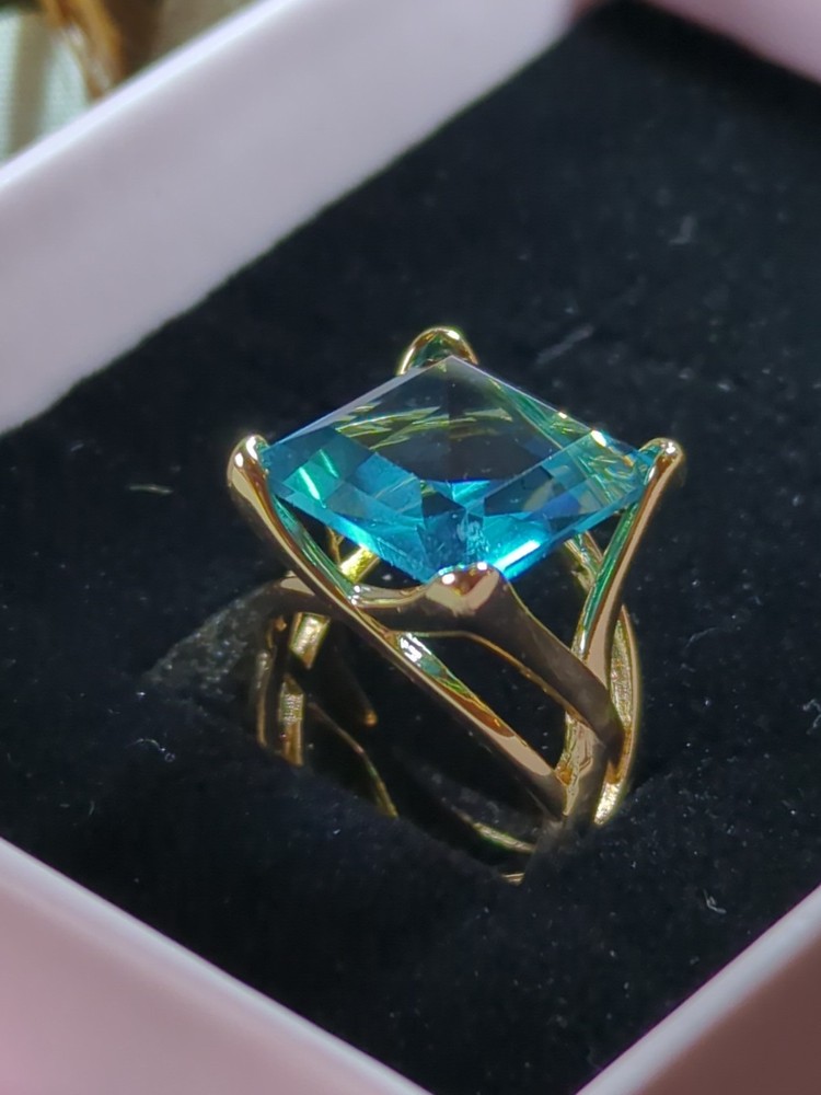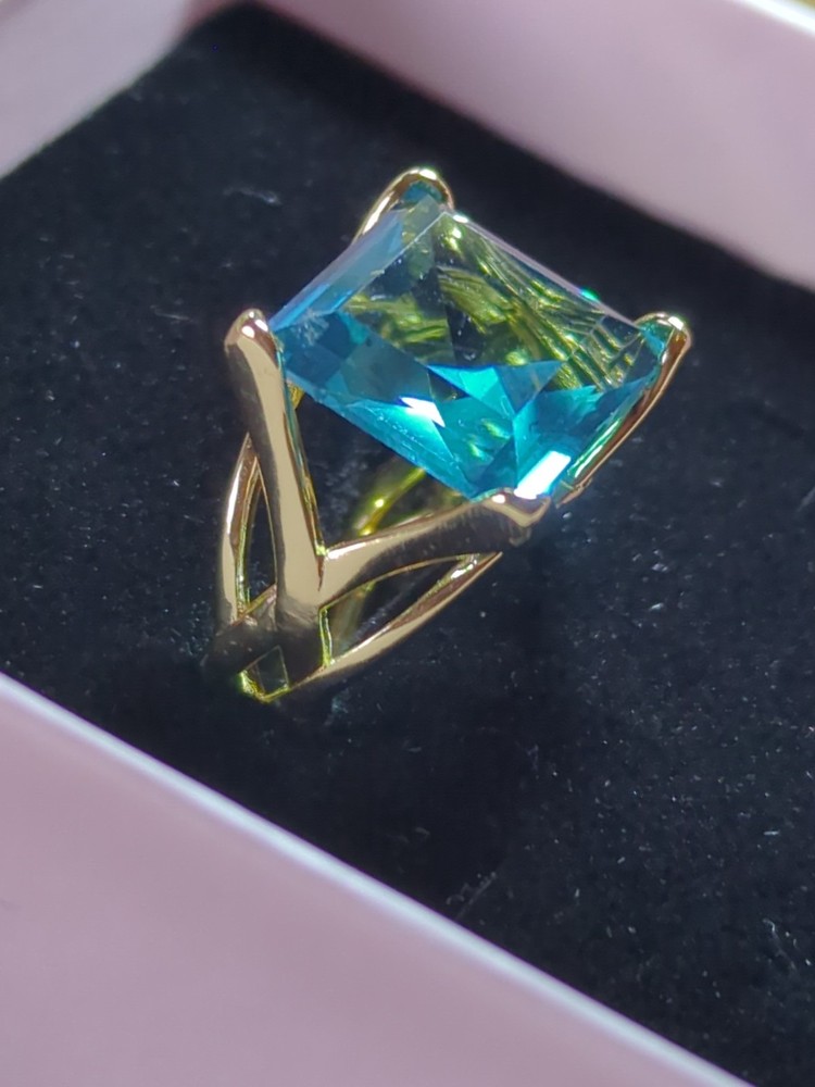 The Sterling 925 Size 7 Gold Dipped Ring with a Large Square Baby Blue Caribbean Ice Topaz is a stunning piece of fine jewelry. With a square shape main stone and a matching square shape metal purity, this ring is a unique and elegant choice. The gold dipping adds a touch of luxury to the silver metal, while the beautiful blue topaz stone adds a pop of color. Perfect for those who appreciate a combination of sophistication and style in their jewelry collection.909.