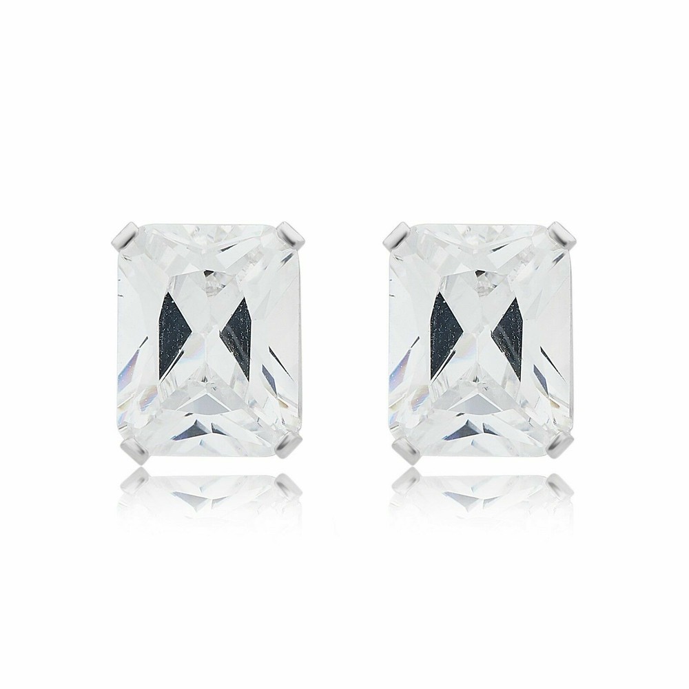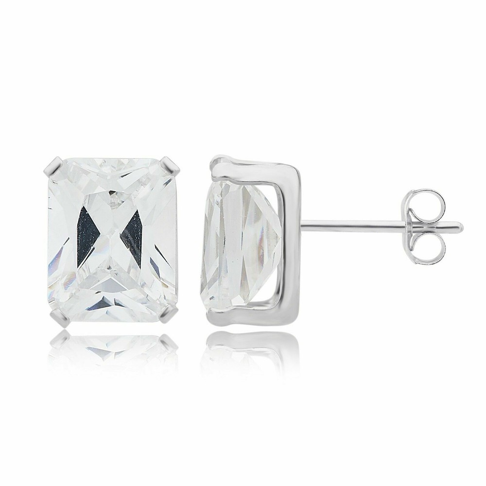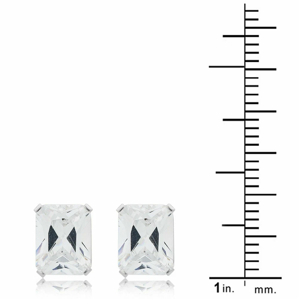 Sterling Silver Emerald Shape Cubic Zirconia Stud Earrings by Unique Design -------------------------------------------------------------------------------------------------------------------------------------------- Easily add some elegance to any outfit with these beautiful stud earrings from Unique Design. Crafted of Sterling Silver with a round cubic zirconia stone prong-set in each side, these earrings boast a classic, lasting style that is difficult to top. -------------------------------------------------------------------------------------------------------------------------------------------- Earring Attributes : Metal Type : Sterling Silver Metal Purity : 925 Parts per 1000 Metal Color : White Plating : Rhodium Finish : polished Nickel-free Hypoallergenic Stone Attributes : Total number of stones : 2 Center stone shape : Emerald Color : White Dimensions and Weight : Metal Weight : 0.24 gram Product Length : 0.53"Inches Product Height : 0.24"Inches -------------------------------------------------------------------------------------------------------------------------------------------- "This Will be Ship From USA"