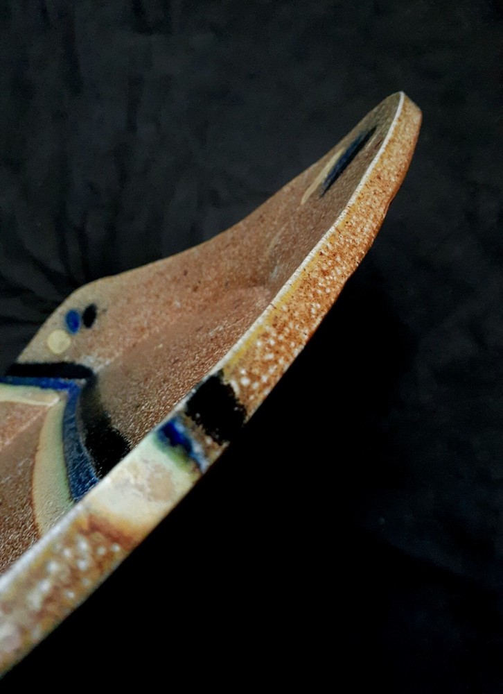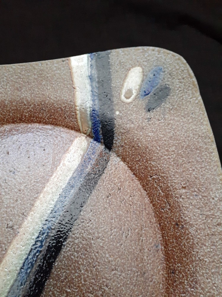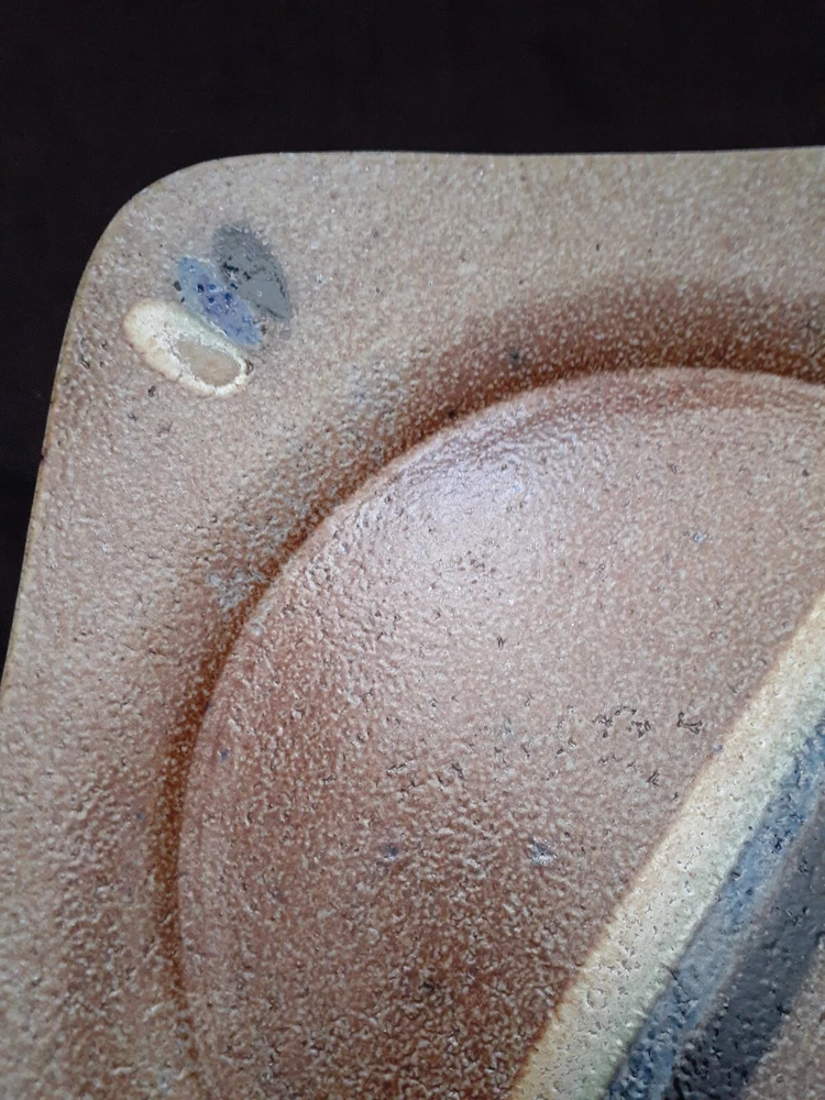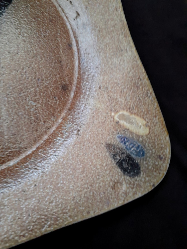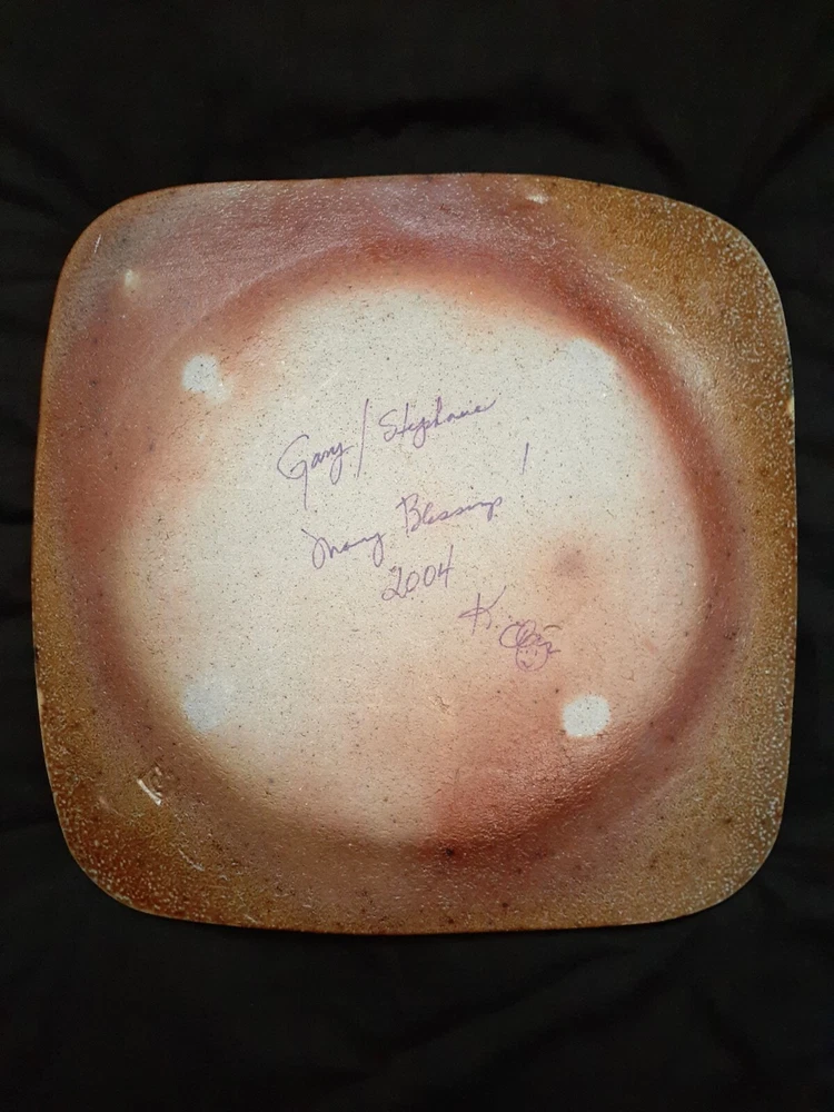 High quality Stoneware pottery heavy ceramic platter in mint condition, artist Signed and logo. Platter measures 10.5 by 10.5 inches and 13.5 inches across. Domestic shipping from $9 International shipping $45