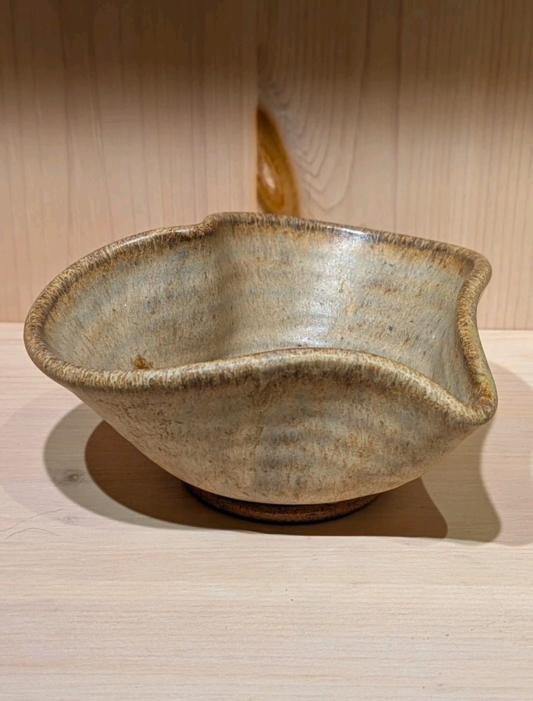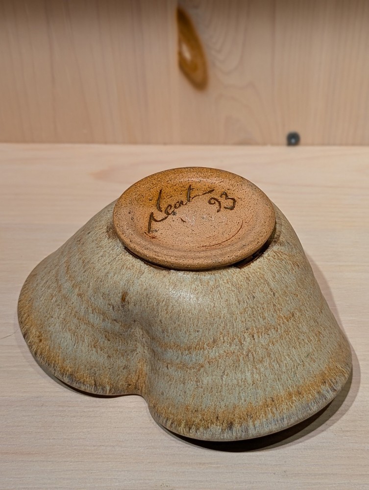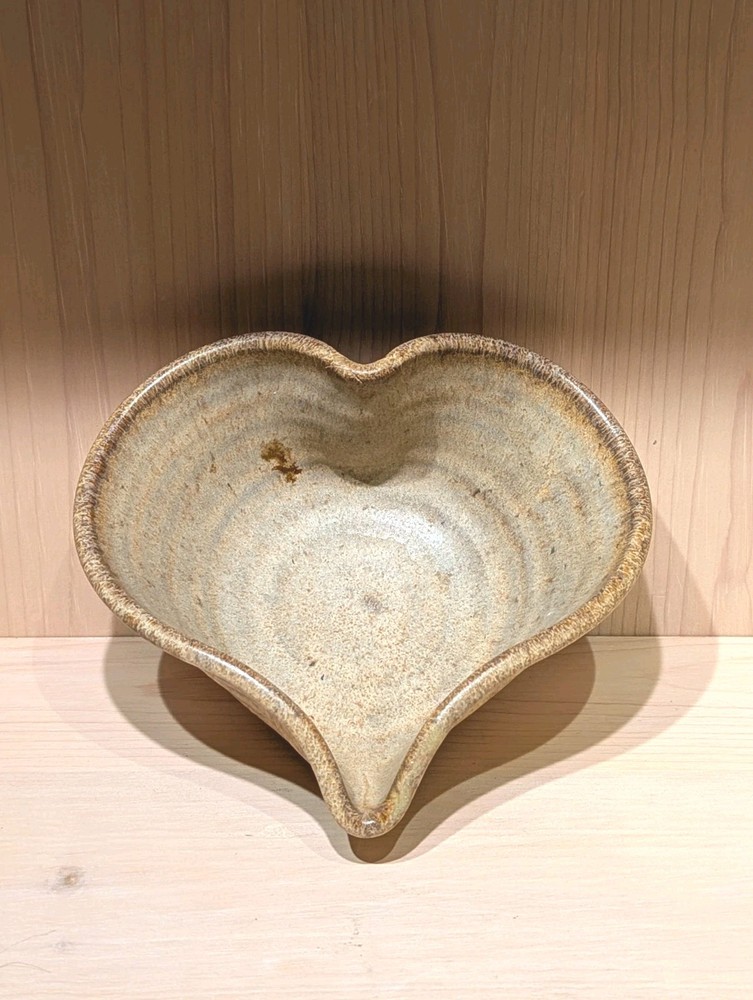 This is a wheel thrown stoneware bowl that has been shaped by hand into a heart. It is c ompletely food safe and may be used in the oven and microwave. The bowl is dishwasher safe making cleanup a breeze. The heart shaped bowl measures 6 ¼” across at the widest point, and stands 2 ½” tall. The bowl is glazed in white with a light brown rim. A bit about the artist: Greg Neal is a self-taught potter, born and raised in Ohio. He began making pottery in high school, and for several years after as a hobby, until becoming a full-time artist over 25 years ago. Greg's work focuses on functional stoneware. Each piece is wheel thrown or hand constructed, with custom glazes mixed in his studio.