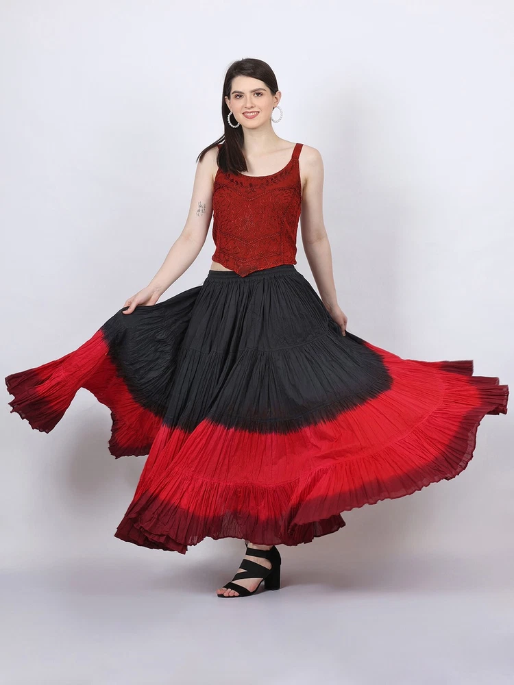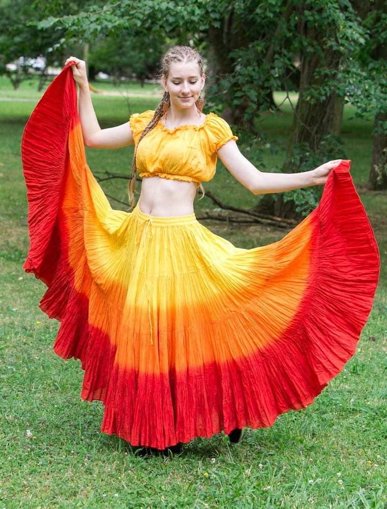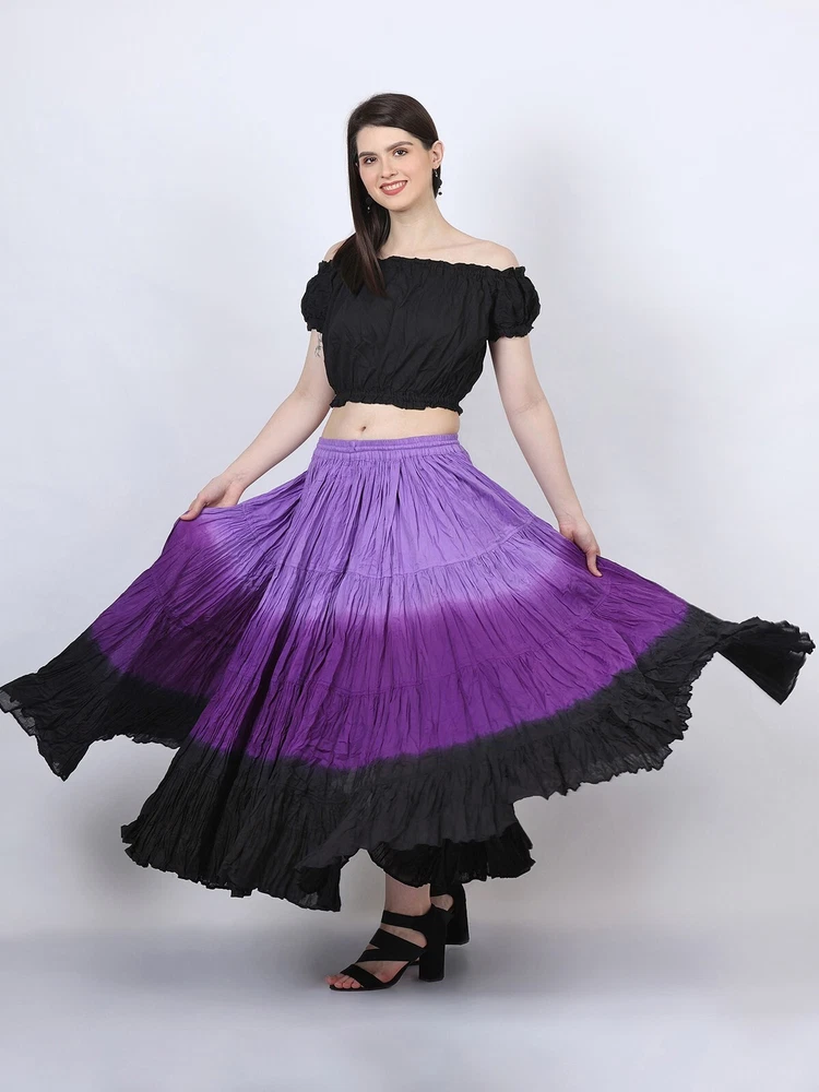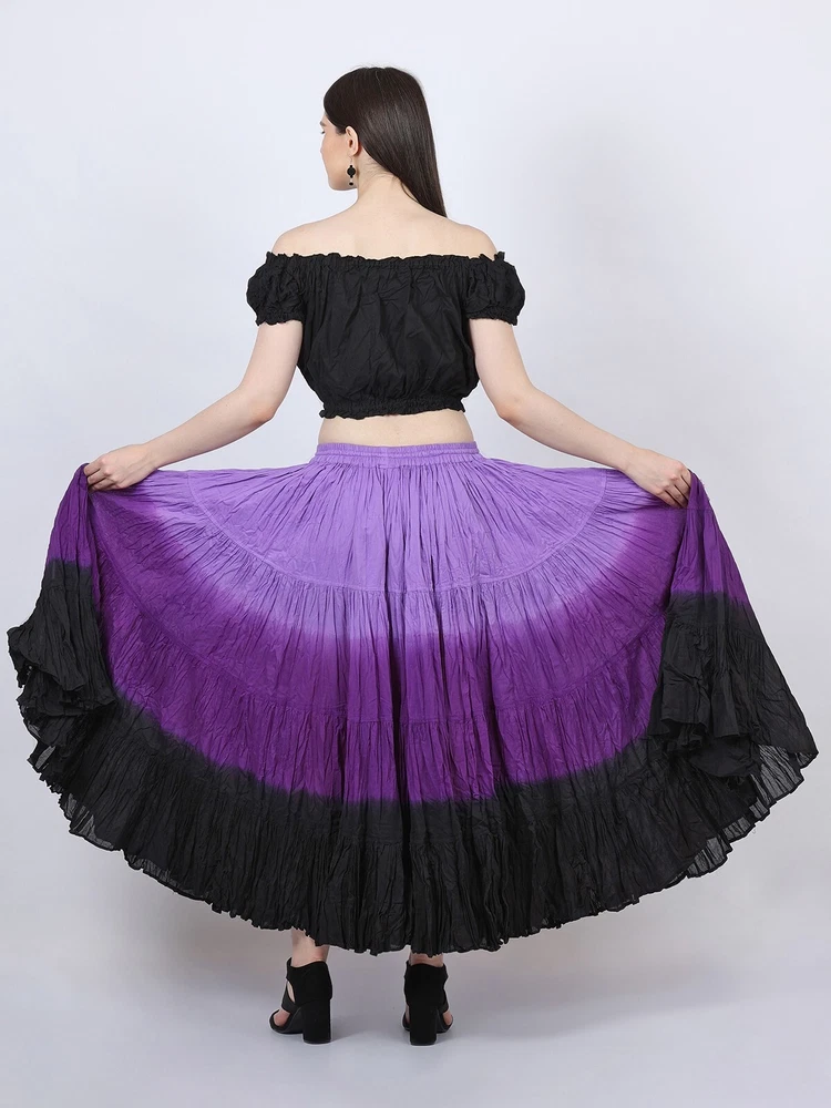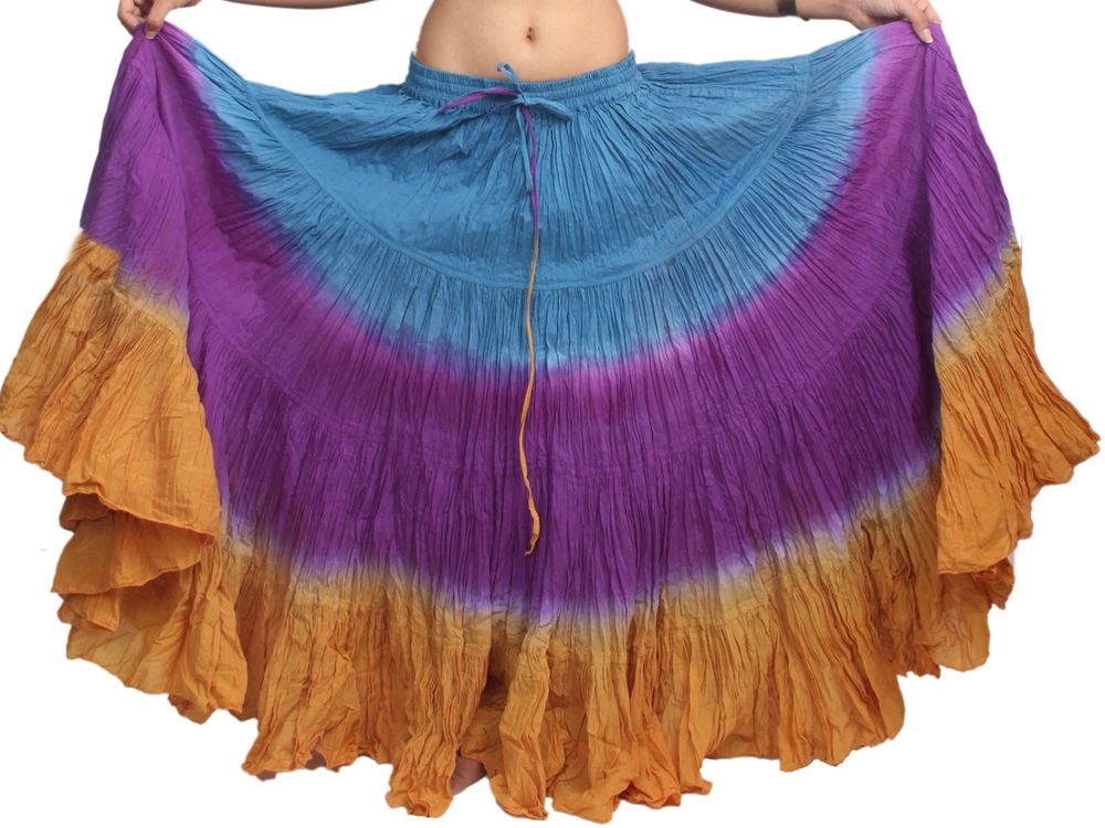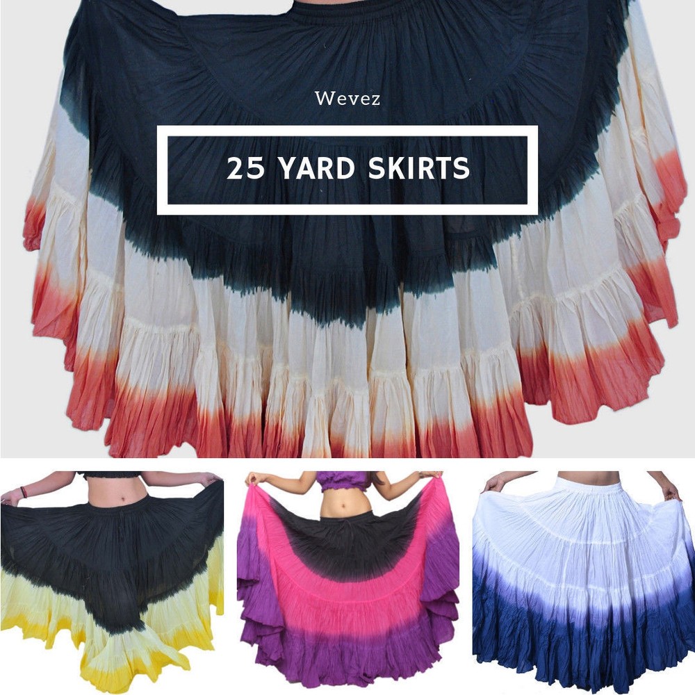 Notice for US Buyers: You don't need to pay any tariffs, we handle all customs fees and clearance. These skirts are made of 100 % cotton gauze fabric. These are perfect skirts for tribal, belly dance, ATS, flamenco, folk dance and many more. These 4 tiered base skirts are sewn in our own factory according to specifications suggested by professionals, then hand finished and hand dyed in the celebrated skirts color palette by Wevez. These have elastic waist and given a string also for double security so one size fits to all. These come with short lining. Made by Fair Trade Manufacturer from India. Awesome for every occasion. Perfect Gifts - The best gifts for every special moment, unique and beautiful. Measure (Approx): Length: 37 inches/94cms; Waist: 30 to 52 inches (stretchable). Color of actual skirt might be little different due to computer's color settings. This listing is only for skirt, no other item shown in image will be shipped.