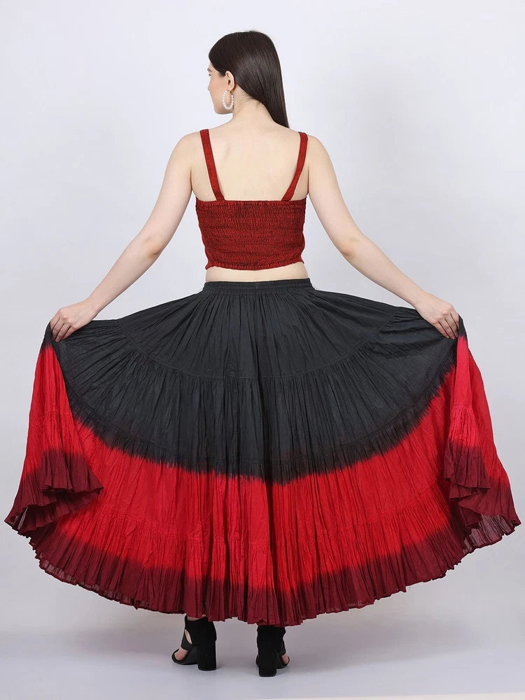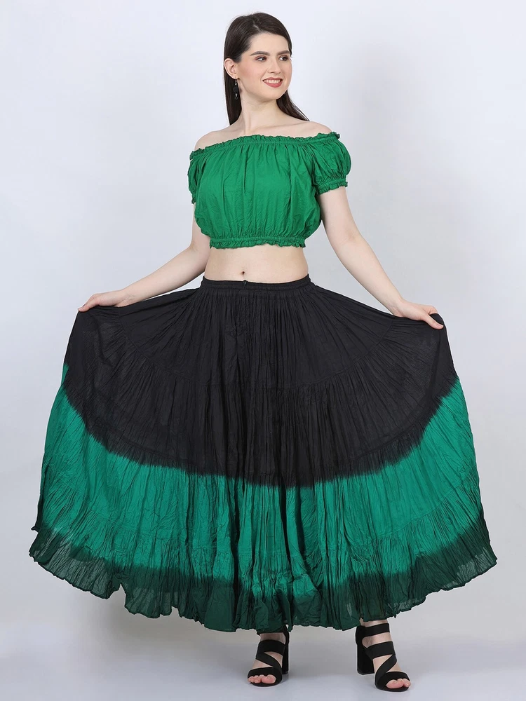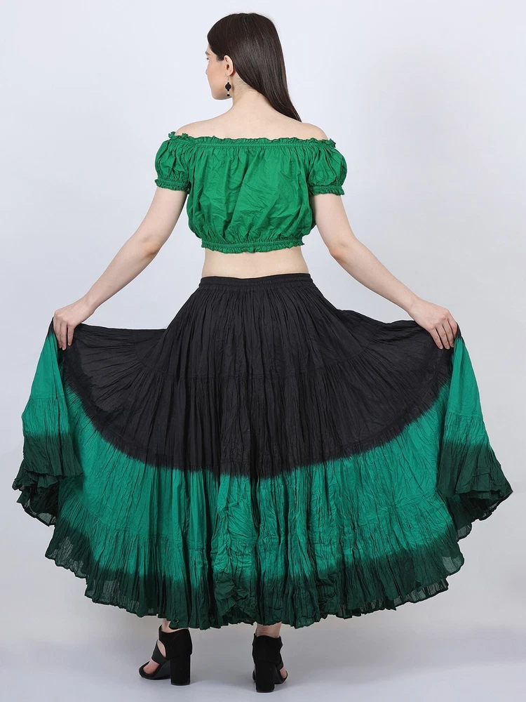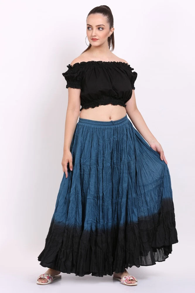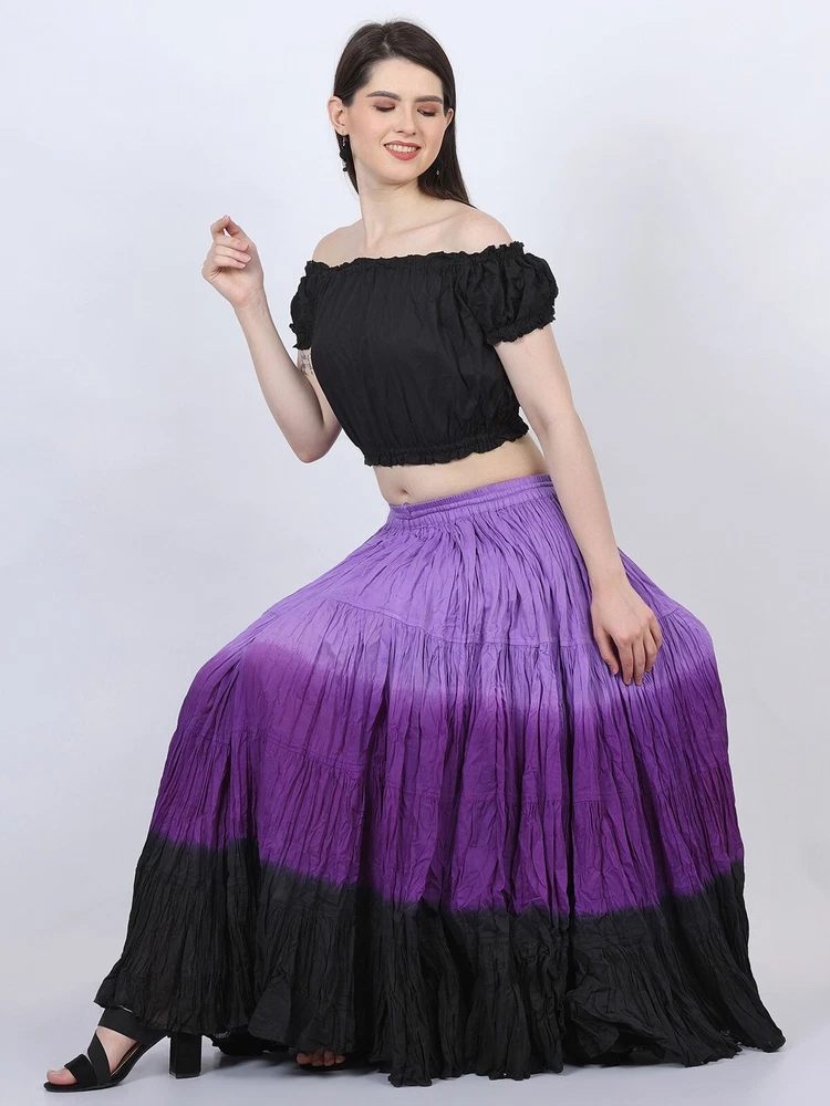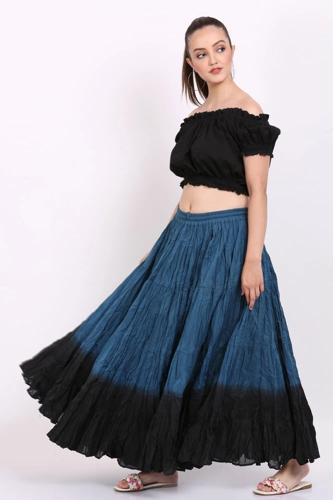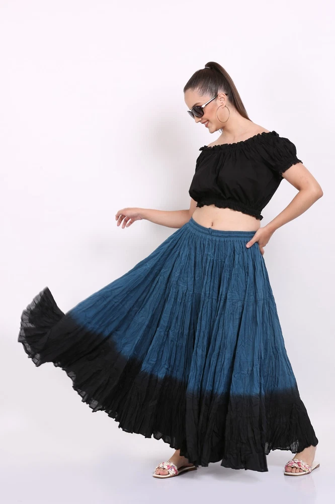 Notice for US Buyers: You don't need to pay any tariffs, we handle all customs fees and clearance. These skirts are made of 100 % cotton gauze fabric. These are perfect skirts for tribal, belly dance, ATS, flamenco, folk dance and many more. These 4 tiered base skirts are sewn in our own factory according to specifications suggested by professionals, then hand finished and hand dyed in the celebrated skirts color palette by Wevez. These have elastic waist and given a string also for double security so one size fits to all. These come with short lining. Made by Fair Trade Manufacturer from India. Awesome for every occasion. Perfect Gifts - The best gifts for every special moment, unique and beautiful. Measure (Approx): Length: 37 inches/94cms; Waist: 30 to 52 inches (stretchable). Color of actual skirt might be little different due to computer's color settings. This listing is only for skirt, no other item shown in image will be shipped.