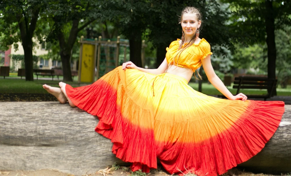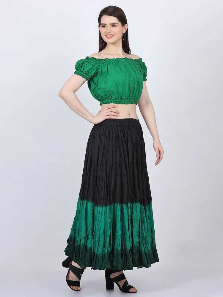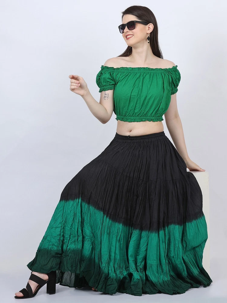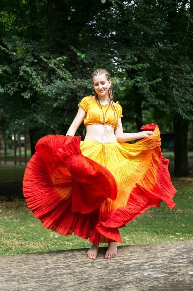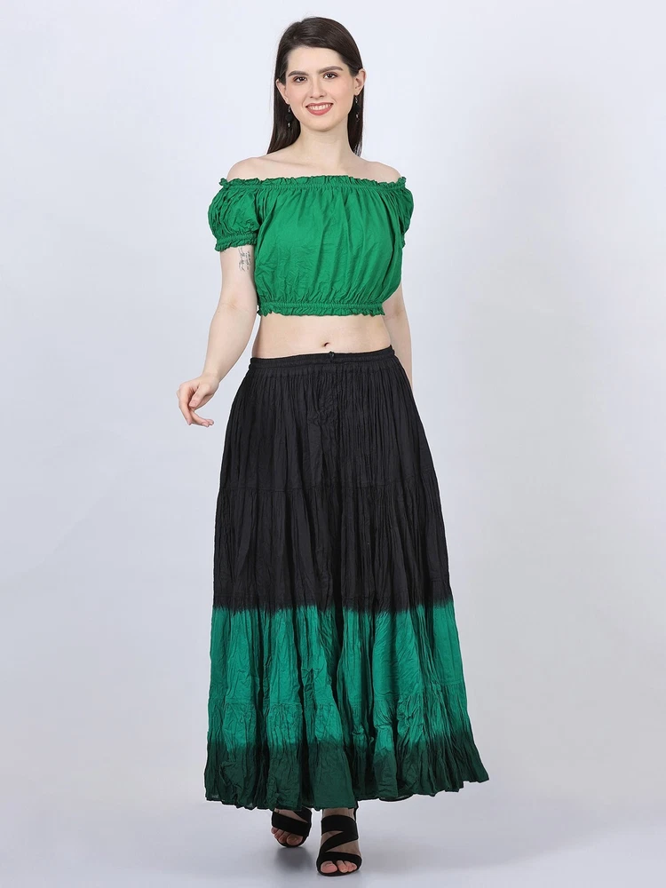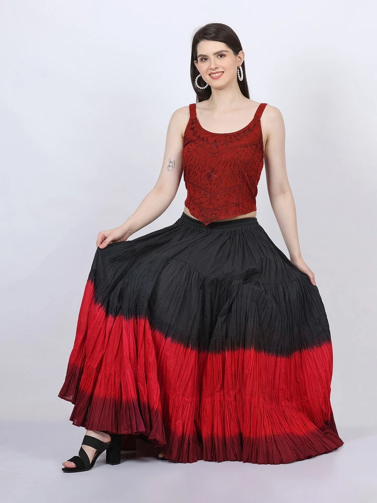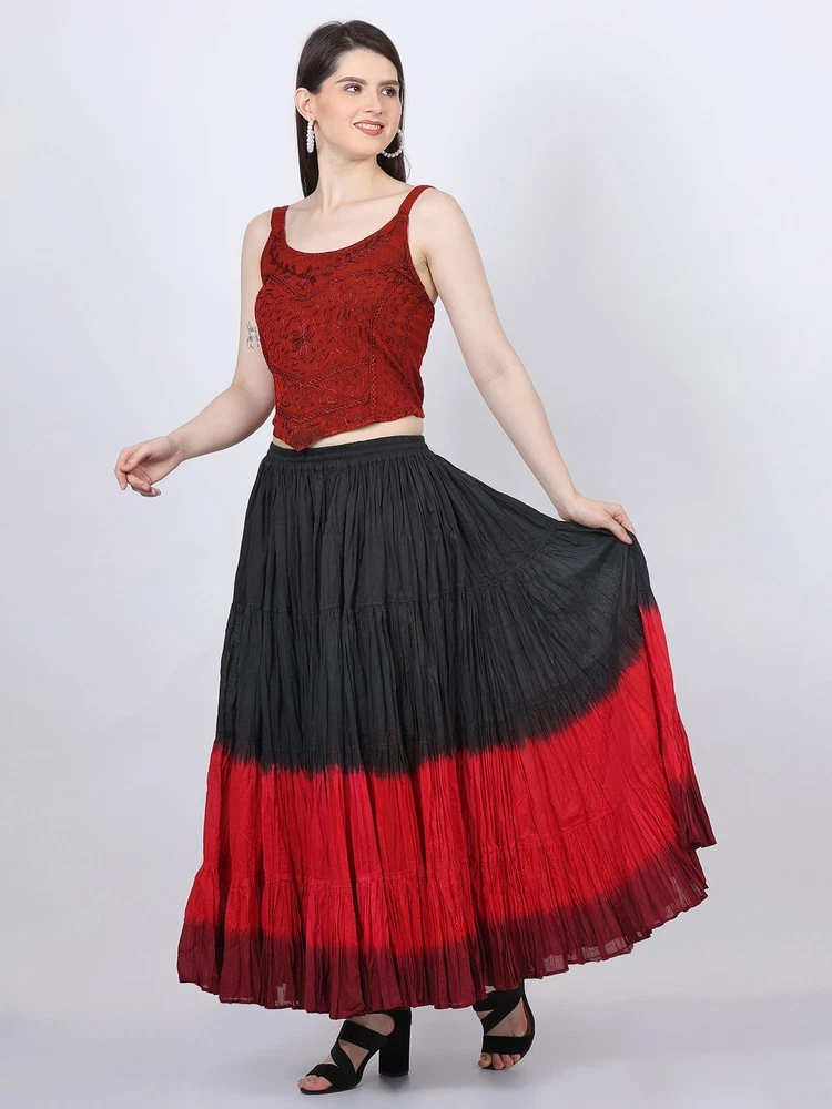Notice for US Buyers: You don't need to pay any tariffs, we handle all customs fees and clearance. These skirts are made of 100 % cotton gauze fabric. These are perfect skirts for tribal, belly dance, ATS, flamenco, folk dance and many more. These 4 tiered base skirts are sewn in our own factory according to specifications suggested by professionals, then hand finished and hand dyed in the celebrated skirts color palette by Wevez. These have elastic waist and given a string also for double security so one size fits to all. These come with short lining. Made by Fair Trade Manufacturer from India. Awesome for every occasion. Perfect Gifts - The best gifts for every special moment, unique and beautiful. Measure (Approx): Length: 37 inches/94cms; Waist: 30 to 52 inches (stretchable). Color of actual skirt might be little different due to computer's color settings. This listing is only for skirt, no other item shown in image will be shipped.