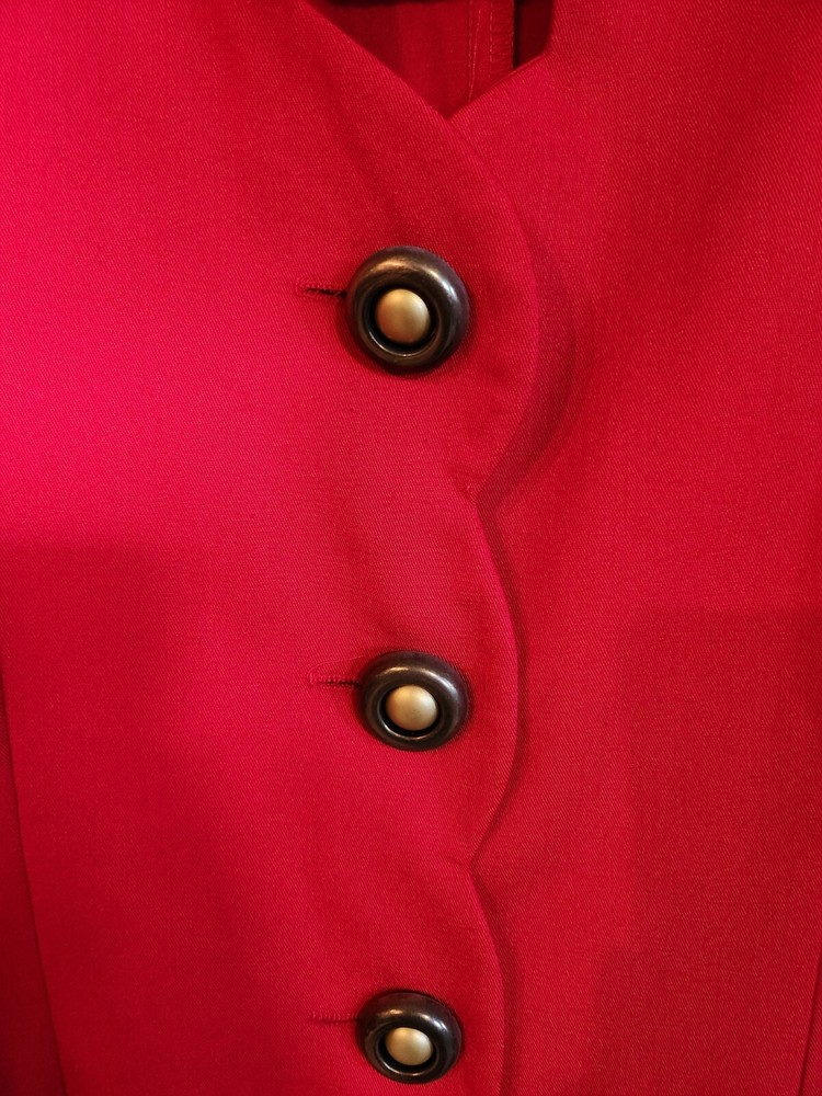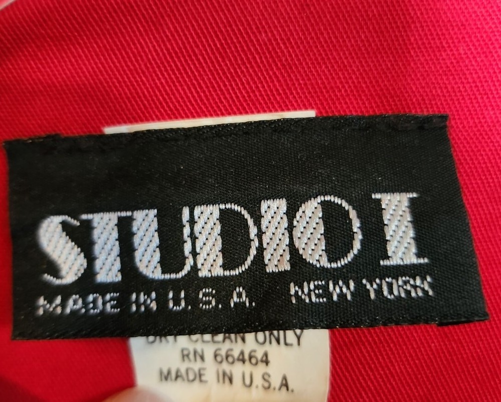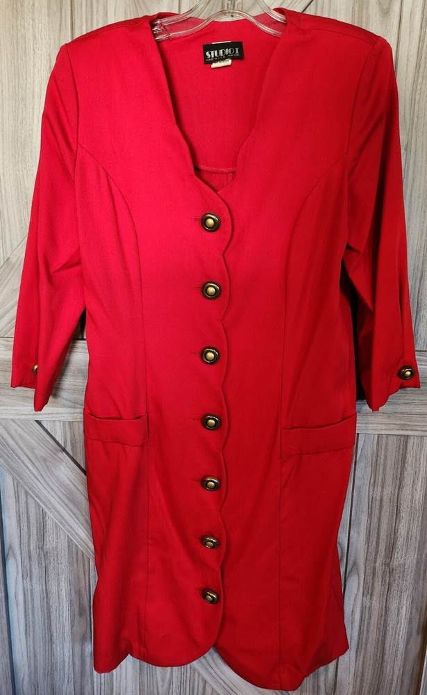 Studio 1 Women VTG Red Gold Button Down Scalloped Edge Sweetheart Neckline Dress SZ 10 Gold Button Faux Front Pockets Shoulder Pads Approx measurements 20" Pit to pit 38" Length