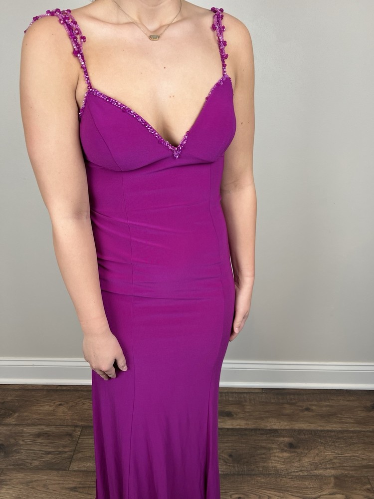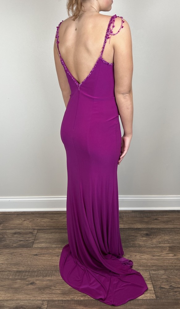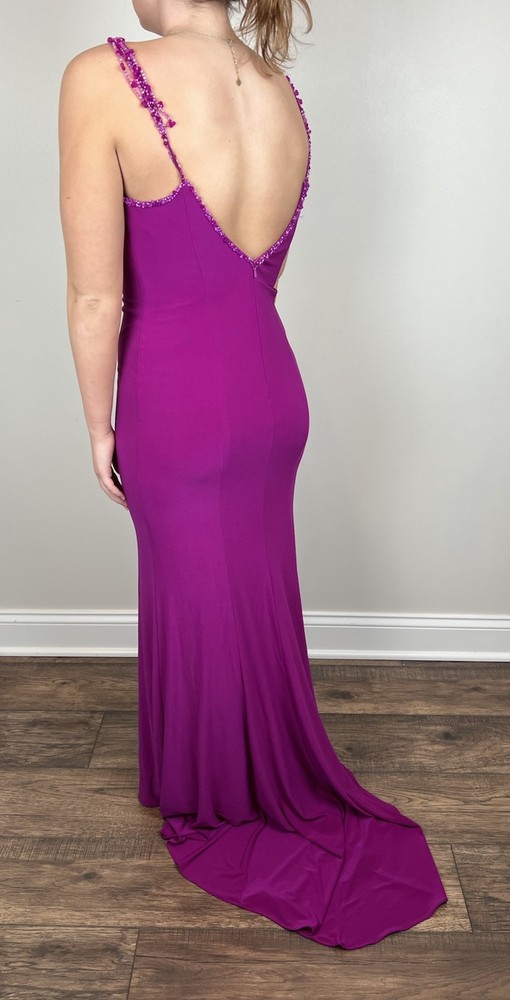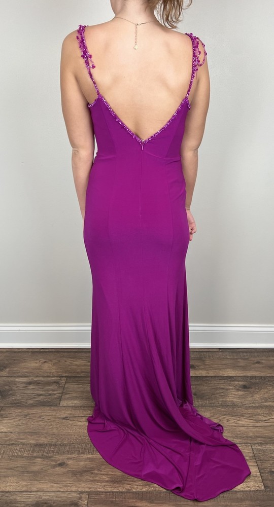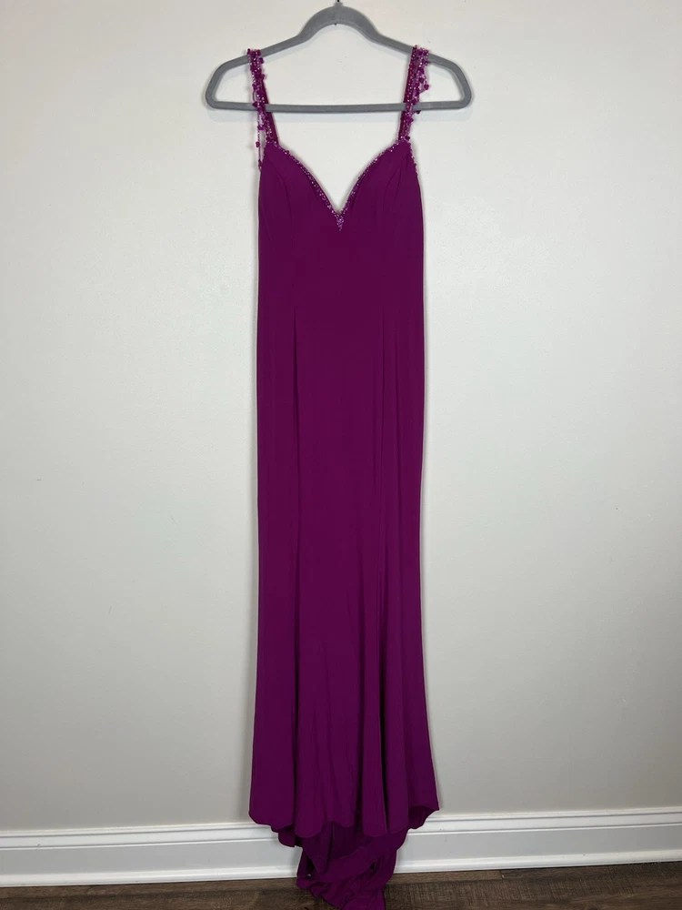 Studio 17 Prom Dress Sz 6 Purple Pink Long Sweetheart Beaded Straps Train EUC