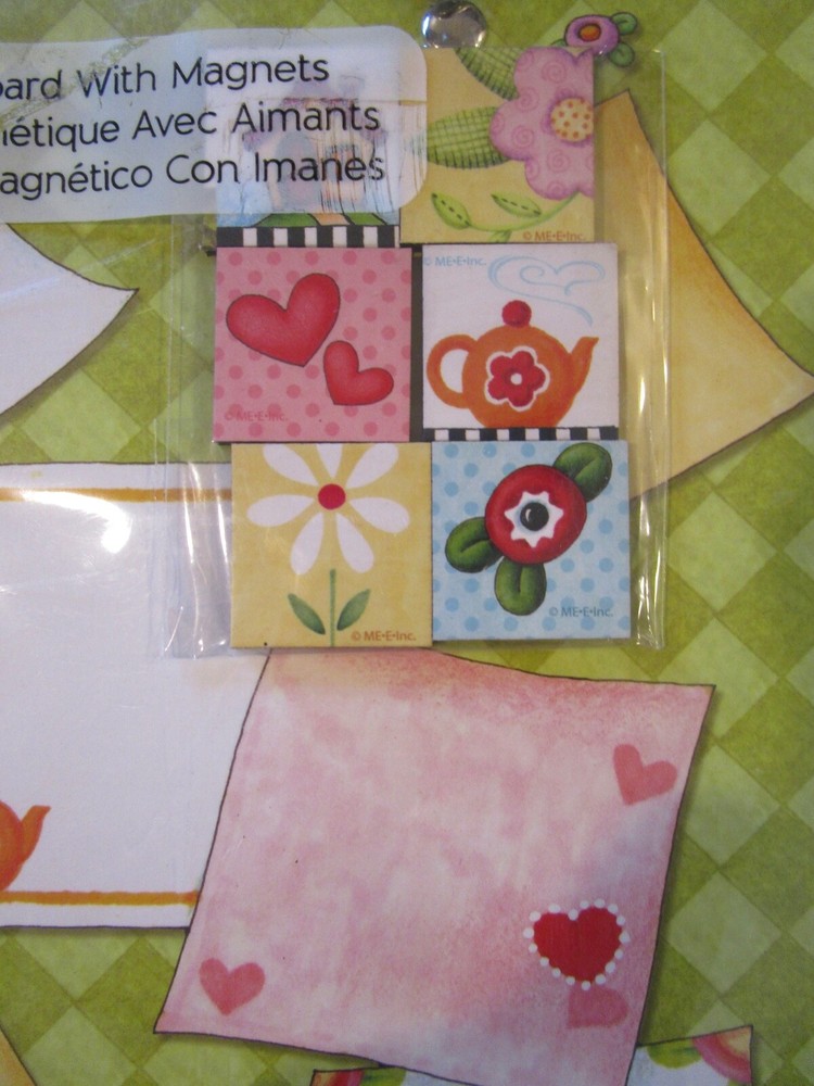 Studio 18 Magnetic Wall Board & 6 Magnets Mary Engelbreit Co New in Sealed Pack Sturdy hard plastic magnetic Wall Board w/ 6 magnets. Colorful and washable with soft cloth. Size is 10 x 10 inch square. Brand new. Retired. I will combine shipping for multiple purchases.