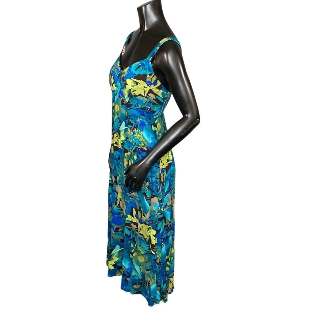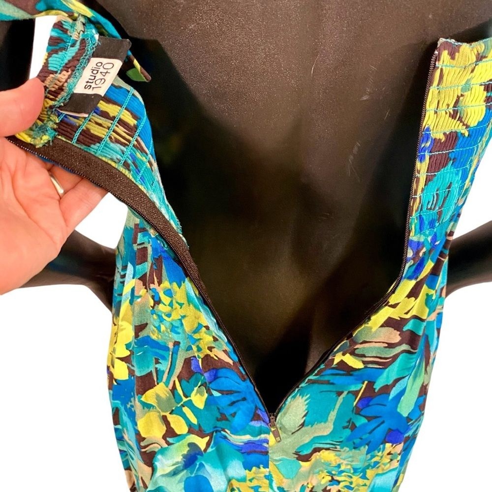Studio 1940 Midi Floral Dress Womens Size SM Sleeveless Back Zip Adjustable Great for vacation or a wedding shower. This pretty midi length dress has adjustable straps, a v shaped neckline, and bold floral print. In great pre-loved condition with no rips or stains. Material and size tags have been removed. Previous owner has sensitive skin. Fits a size small best. Size: Small Pit - Pit: 16" flat across Waist: 15" Length: 45"