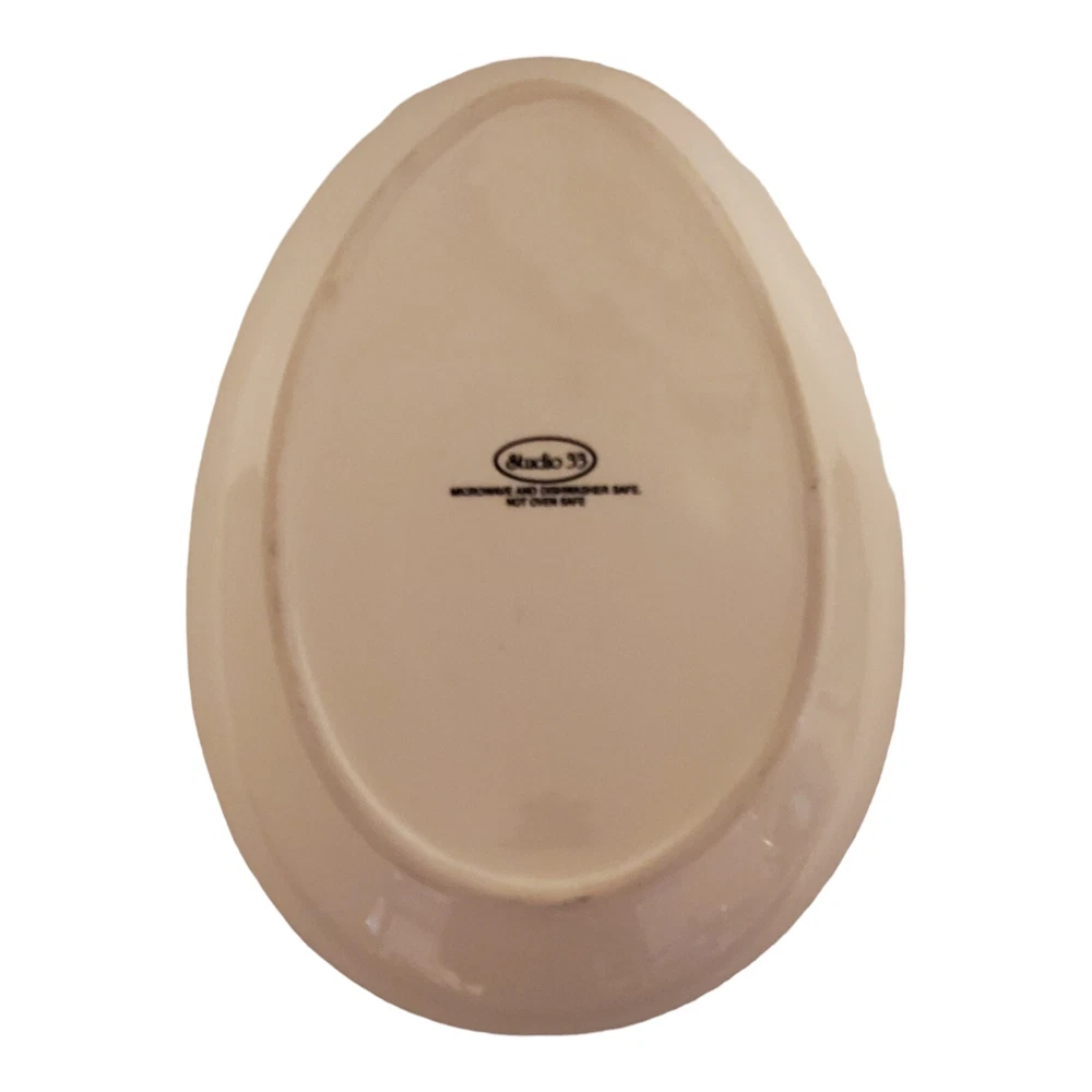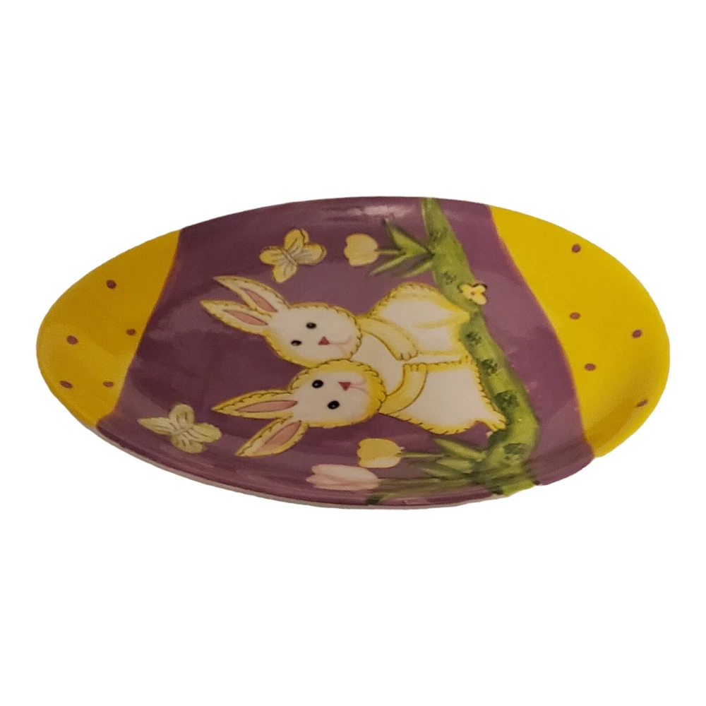 Studio 33 Ceramic Decorative Easter Egg Shaped Plate with Bunnies, 9 1/4"