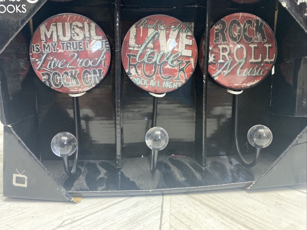 Studio 5 Decorative Glass Wall Hooks - Rock N Roll - NIP. Description Measurements: All Measurements are flat lay and are approximate. We do not accept returns for items that don’t fit so please review the measurements and if by chance measurements are not included in the listing please reach out to inquire if need be. Defects: All items are inspected but there are times where defects may be missed, if by chance after purchase you discover a defect it is advised to reach out directly as we are more than willing to work with all of our customers. Customer Service: While we do want to provide the best customer service we will take every consideration if any issues arise. We always appreciate the continued support and hope to continue to provide great products at great prices. Please reach out with any questions or concerns. Offers: You are always welcome to send offers, while during sales offers may not be accepted due to the already discounted price but no reasonable offer will be ignored. Returns: We do not accept returns unless item is not as described and we will work to assist our customers in providing the best customer service. We do accept returns to ensure our ability to continue to provide great prices and prevent fraudulent return requests. Electronics: All electronic items are sold as is. All items are tested for its ability to function as well as any missing parts which will be disclosed in the description above. We will not accept any returns on electronics or otherwise if the items has been used, modified, altered or switched with another item for any reason. We want this experience to be pleasant for everyone and hope to continue to support the community and the earth through recycling clothing and goods back into the comm All used clothing is washed per ebay's standard.