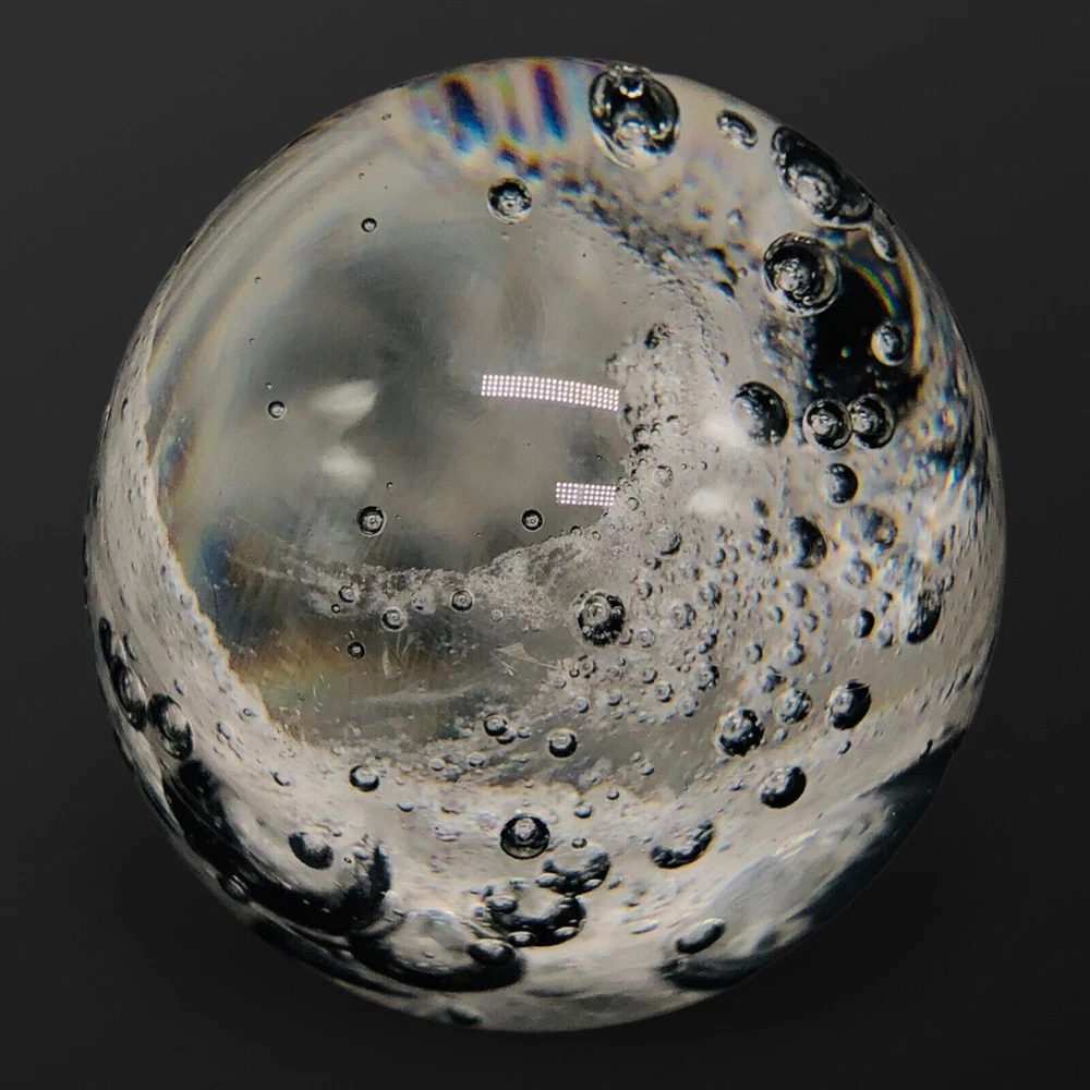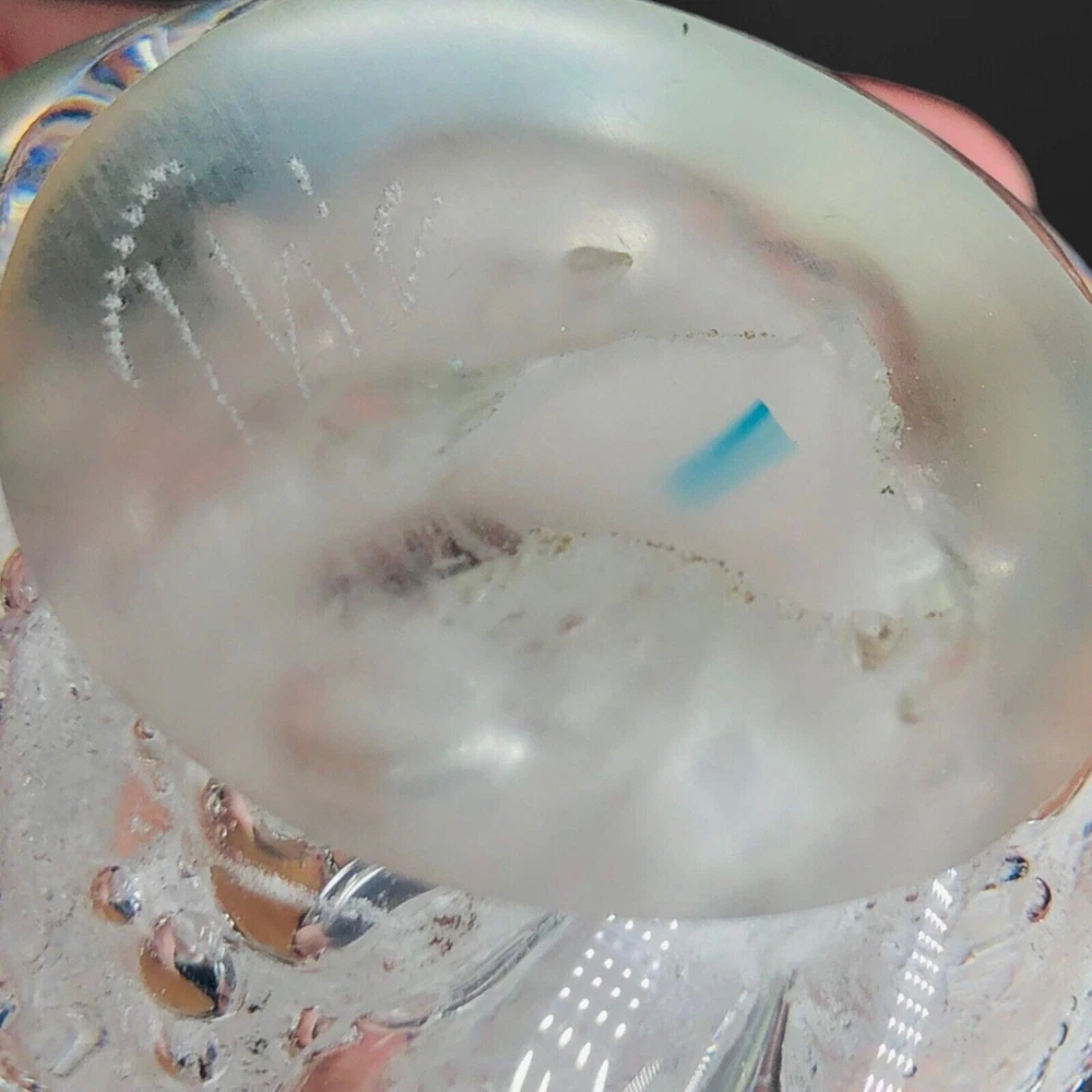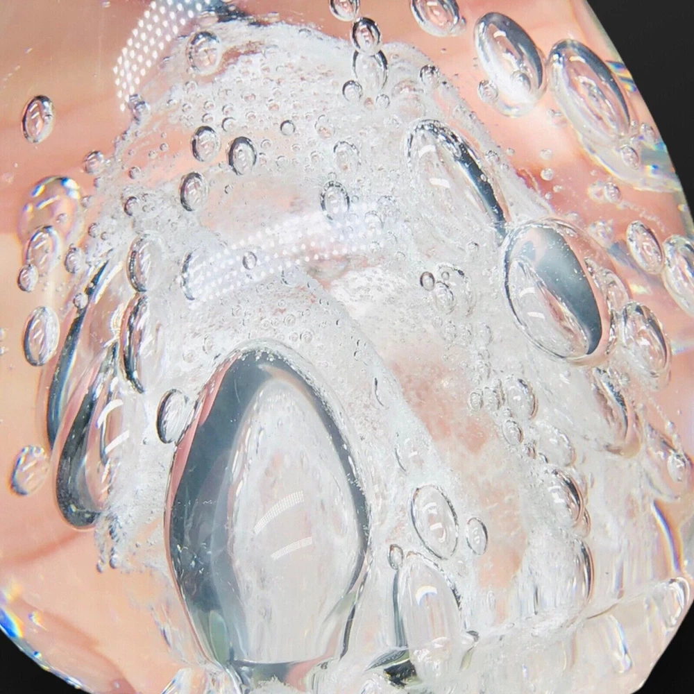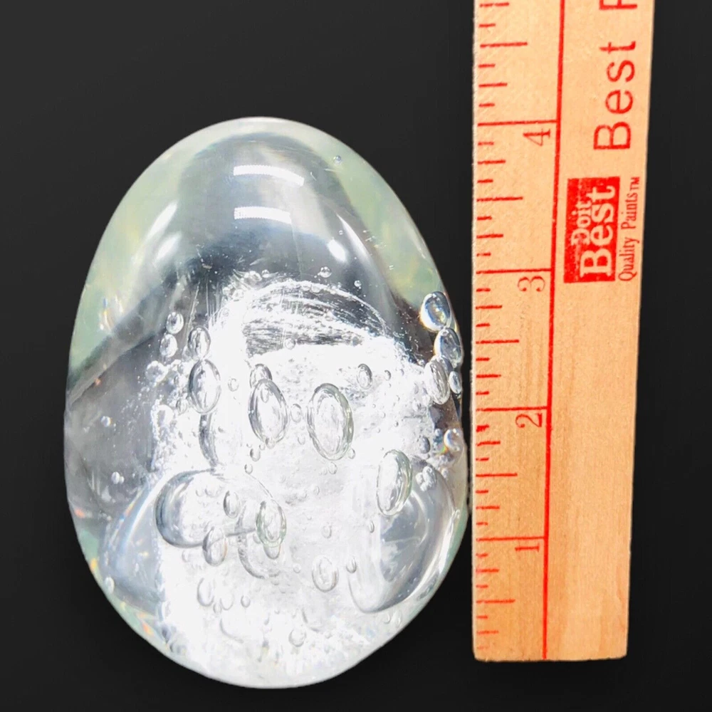 This stunning blown glass paperweight is a true work of art! The egg-shaped design features mesmerizing bubbles and swirls that catch the light beautifully. At 4 inches, it has a satisfying weight and flawless craftsmanship, signed by artist Thie. The frosted base adds an elegant touch, making it perfect for display or practical use. A gorgeous conversation piece that adds sophistication to any space. I love how the waves of color seem to move when turned in the light – absolutely captivating!