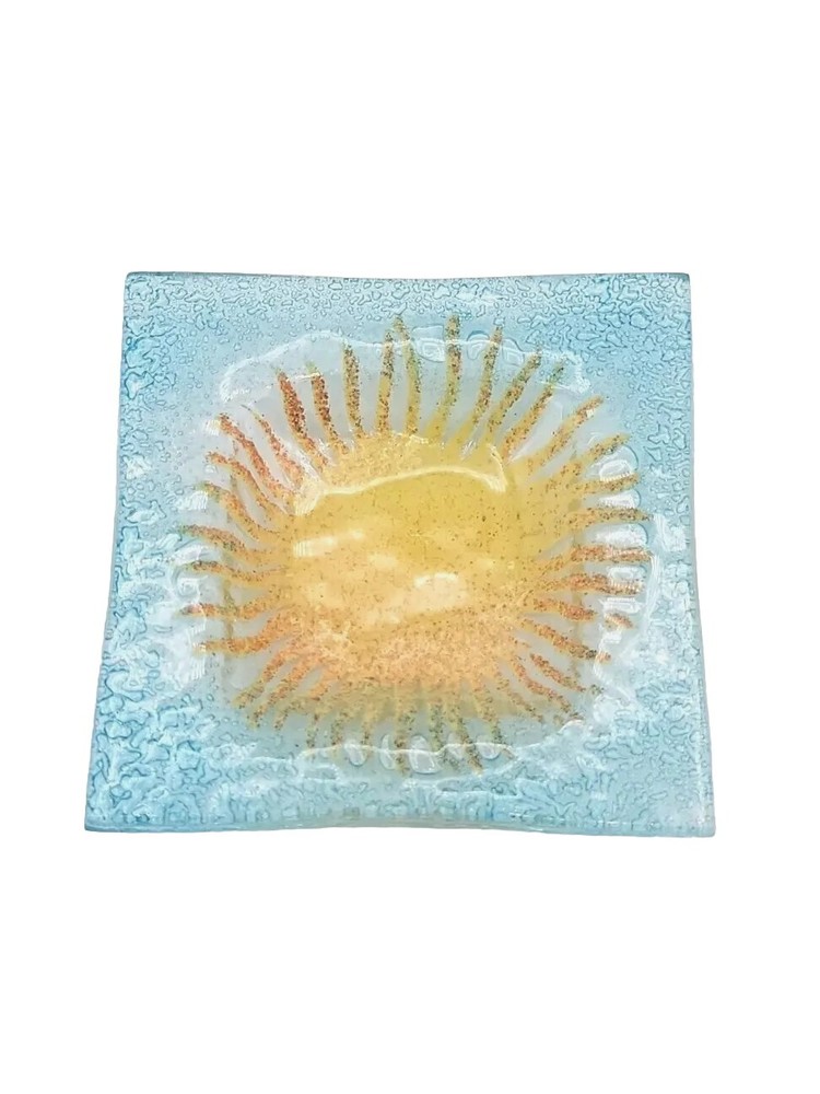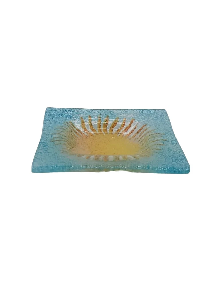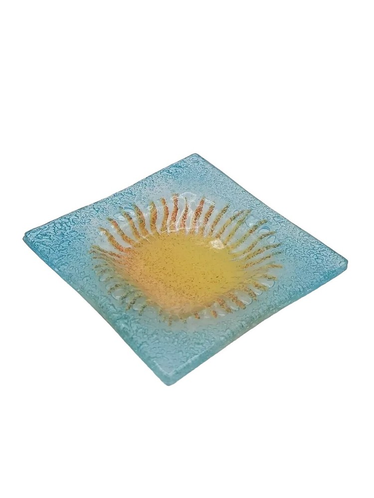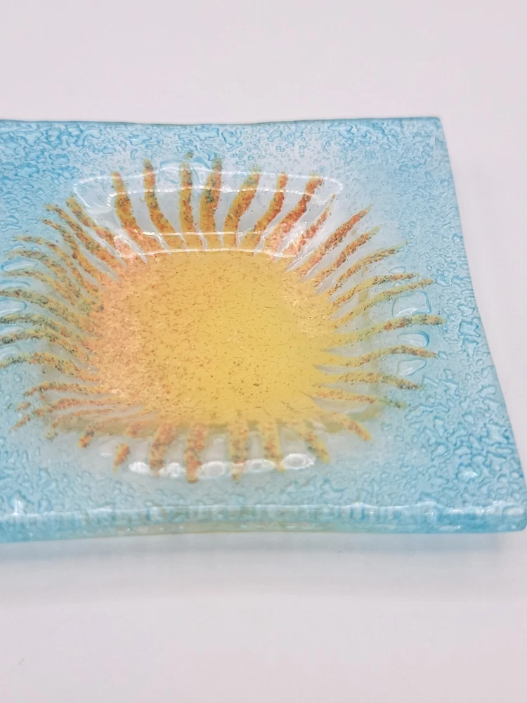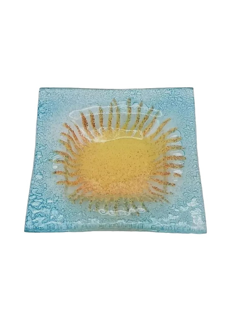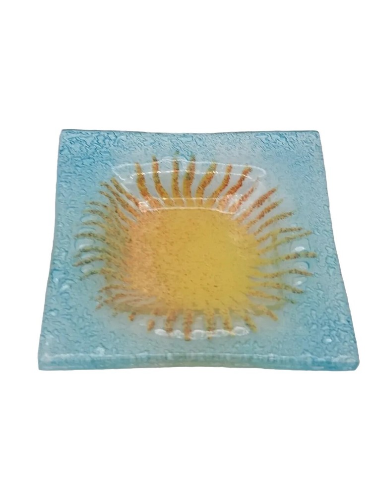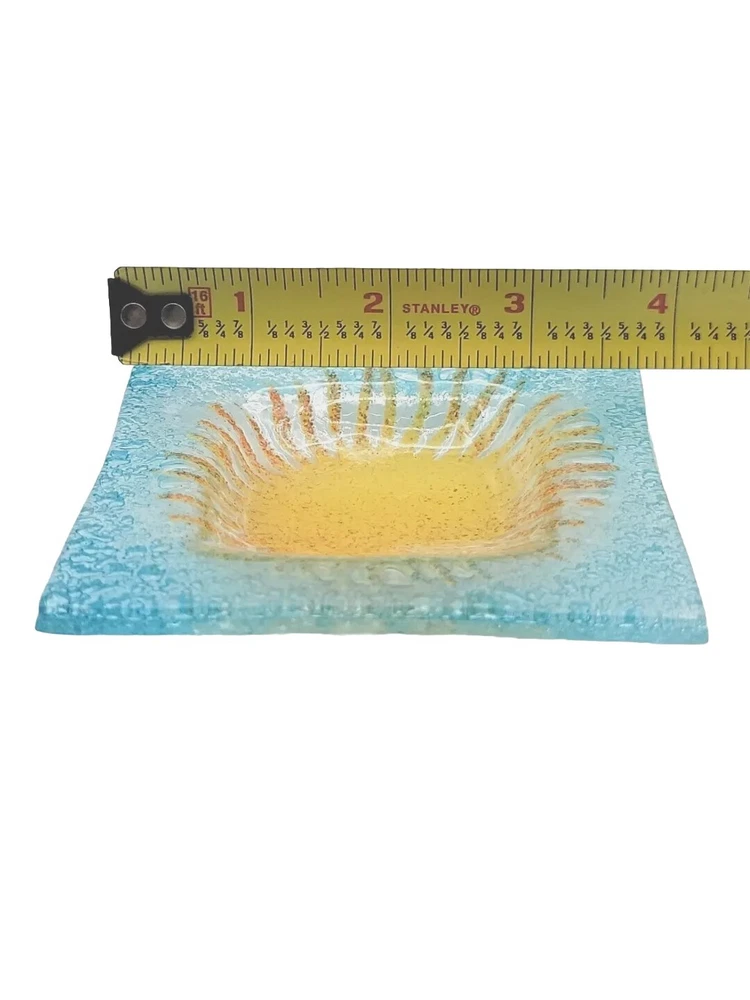 This beautiful blue glass trinket dish with a cheerful yellow sun center is even prettier in person! The colors pop and it’s in perfect condition—no chips or cracks. Perfect for jewelry, rings, or small keepsakes. Very happy with this unique find!