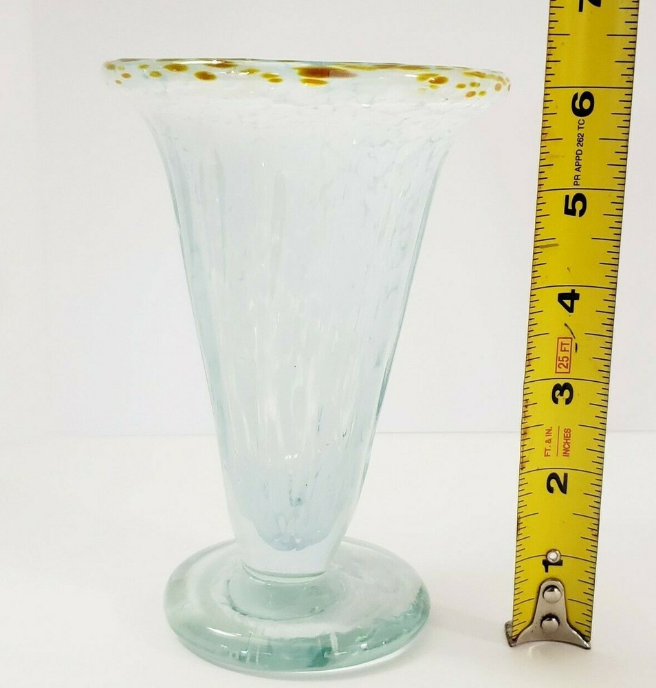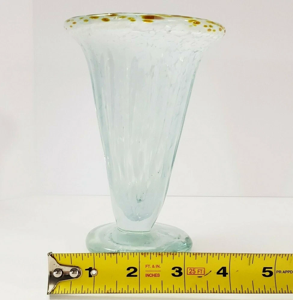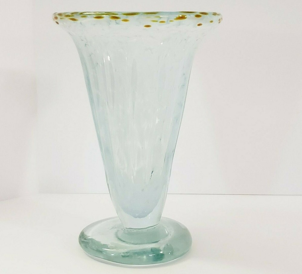 Studio Art Glass Cone Shaped Flower Vase Vessel Hand Blown Signed In good condition. No chips or cracks. Approximate Measurements: Height- 6 inches Length- 5 inches Width- 5 inches Please review all pictures for condition. Thank you for supporting my small business!
