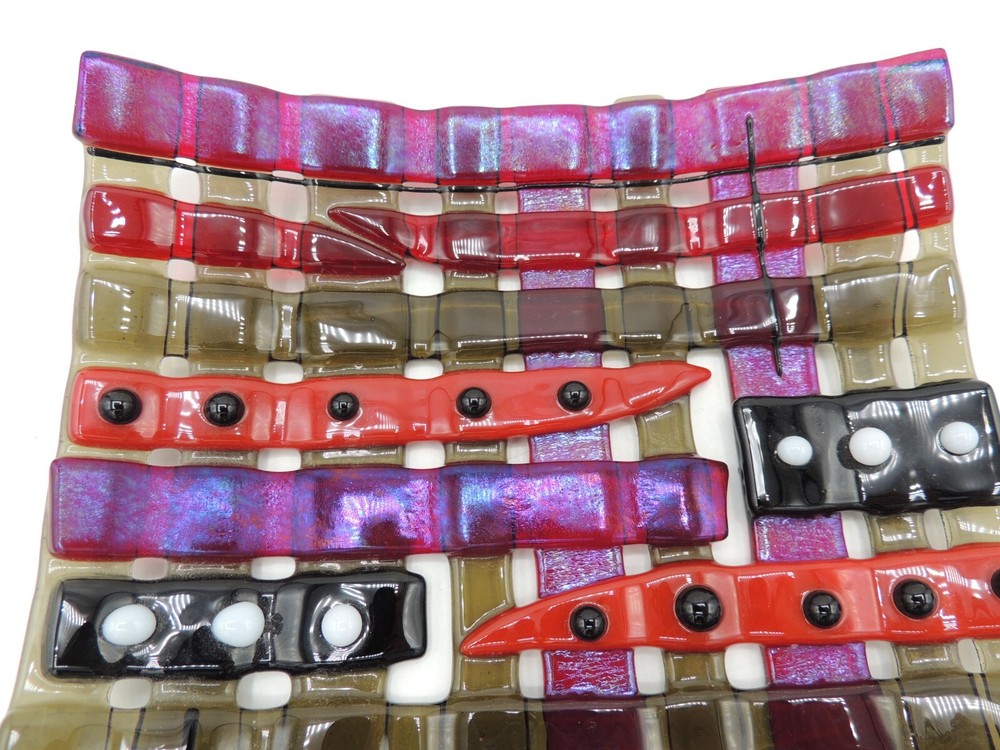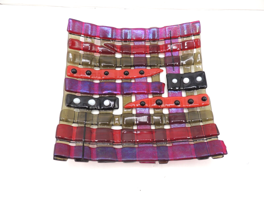 Studio Art Glass Dish Iridescent Whimsical 6" by 6 1/4" by 1 1/4" Very nice condition. No wear issues noted....