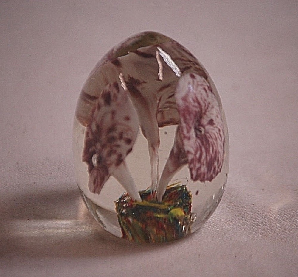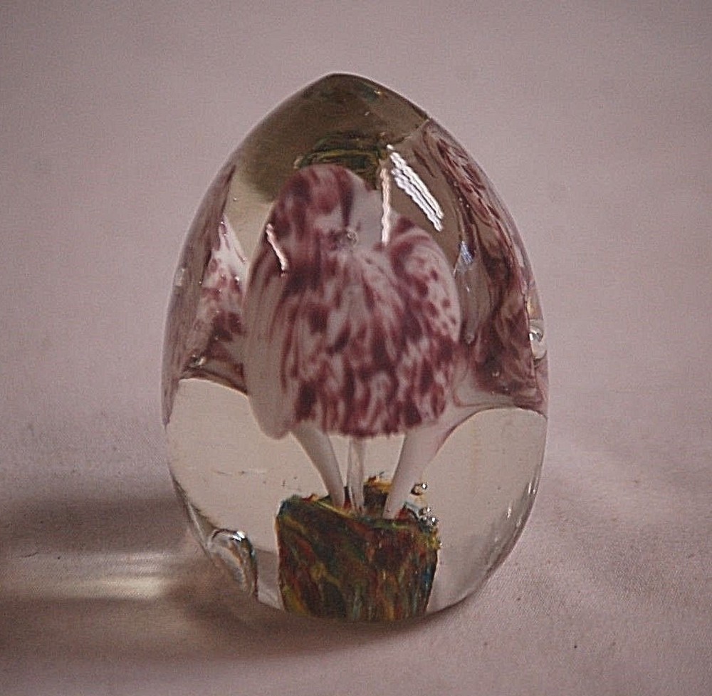 Old Vintage Studio Art Glass Paperweight Clear with Mushrooms Oblong Shaped with Controlled Bubbles Approx. 3-1/4" Tall Please check out our other listings!