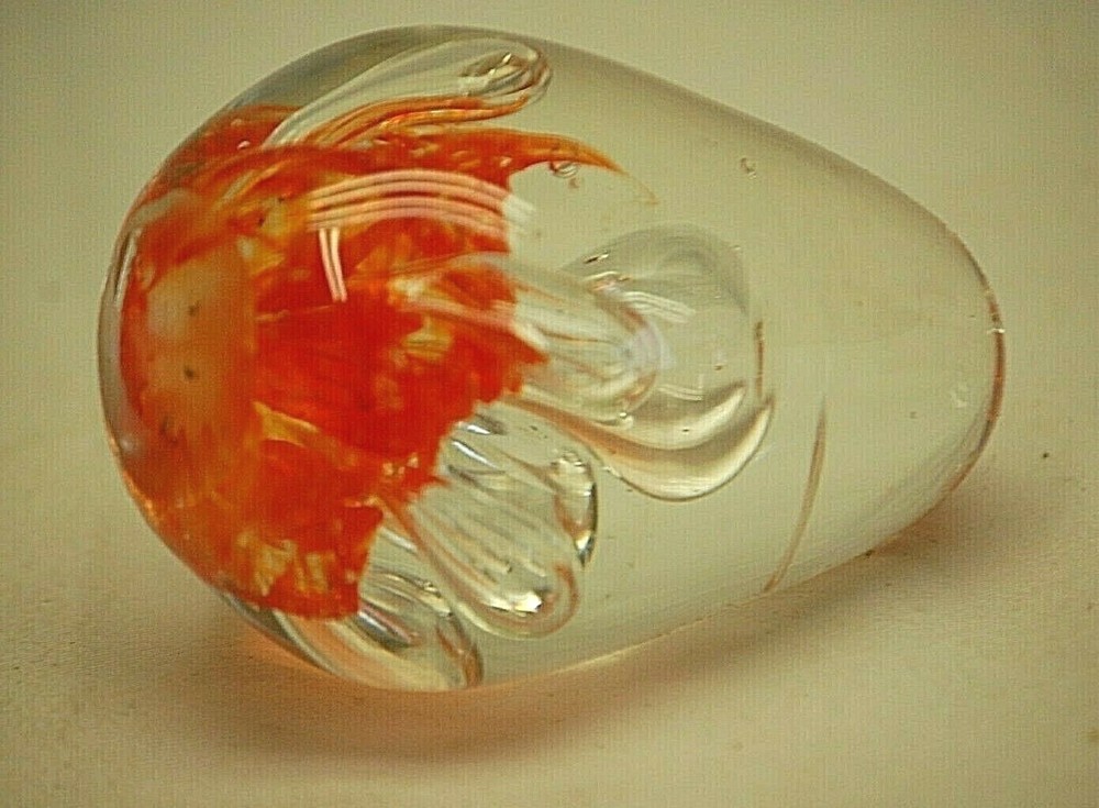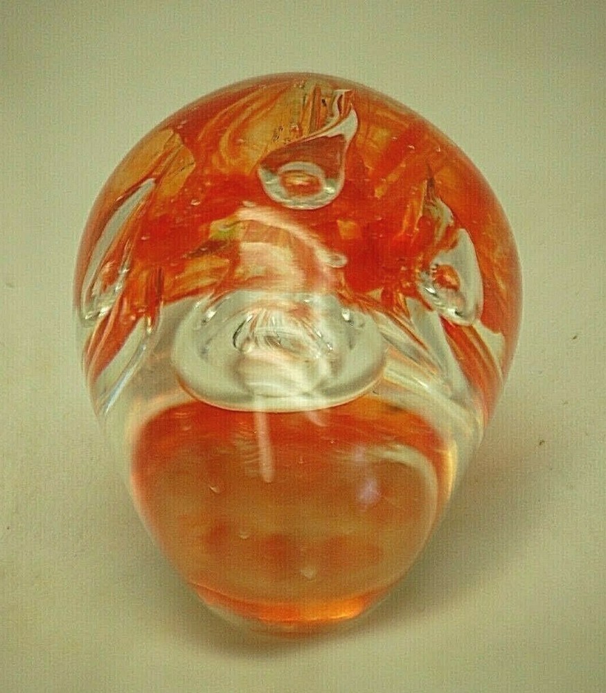 Old Vintage Studio Art Glass Paperweight Orange Waves & Clear Oblong Shaped with Controlled Bubbles Approx. 3-1/2" Tall Please check out our other listings!