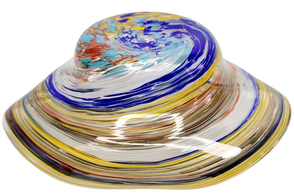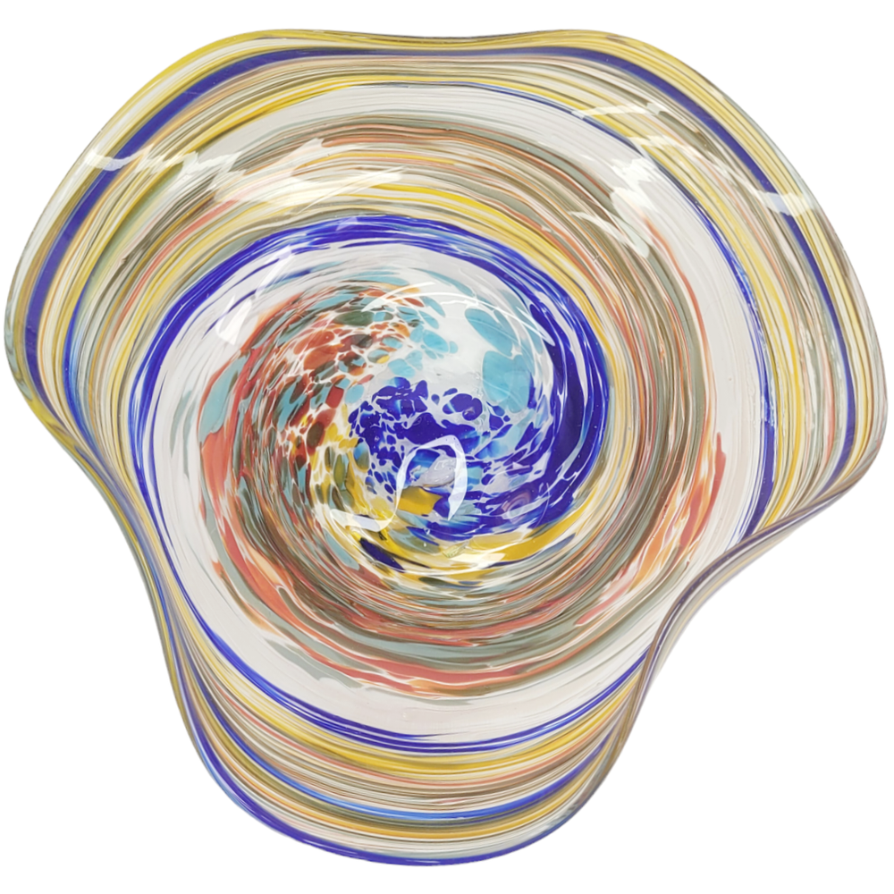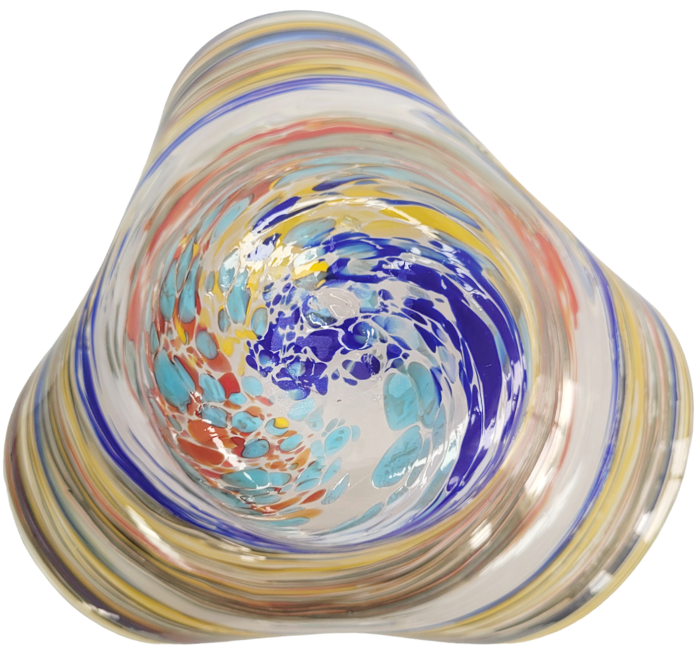 Studio Art Glass Tricorn Bowl Consensus seems to think this is studio art glass Tricorn shaped bowl About 6" across x 2 1/8" high. The bottom is concave. Slightly rough pontil scar No chips, cracks, stains or cloudiness Smoke free/Pet Friendly home. Local pick up in Mayville, WI is always an option at no charge Please email us with any questions about this item, payment or shipping terms. We always combine shipping unless it is absolutely impossible. Any excessive overcharge on shipping cost will be refunded. Import duties and taxes are the sole responsibility of my international buyers THANKS FOR STOPPING IN
