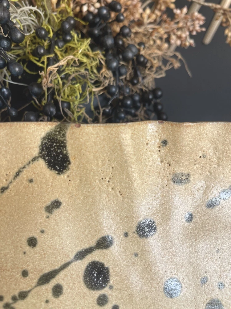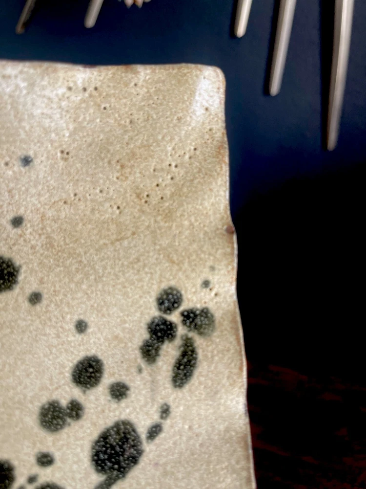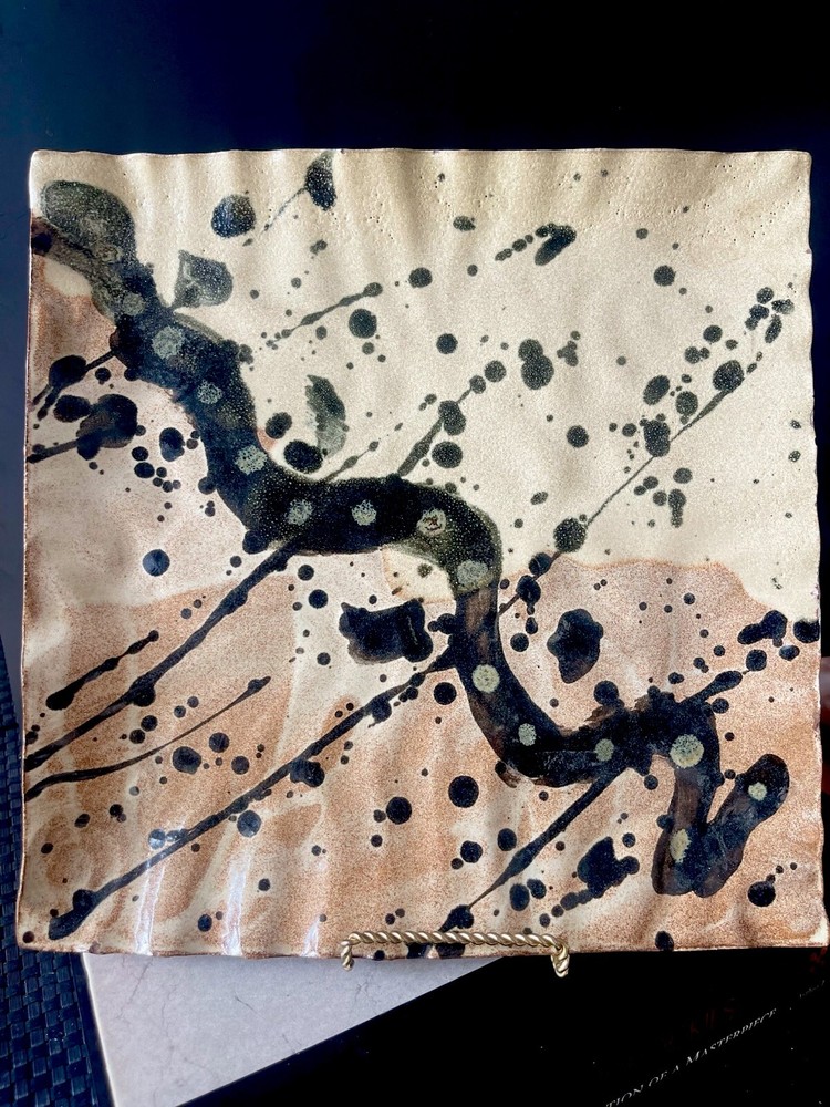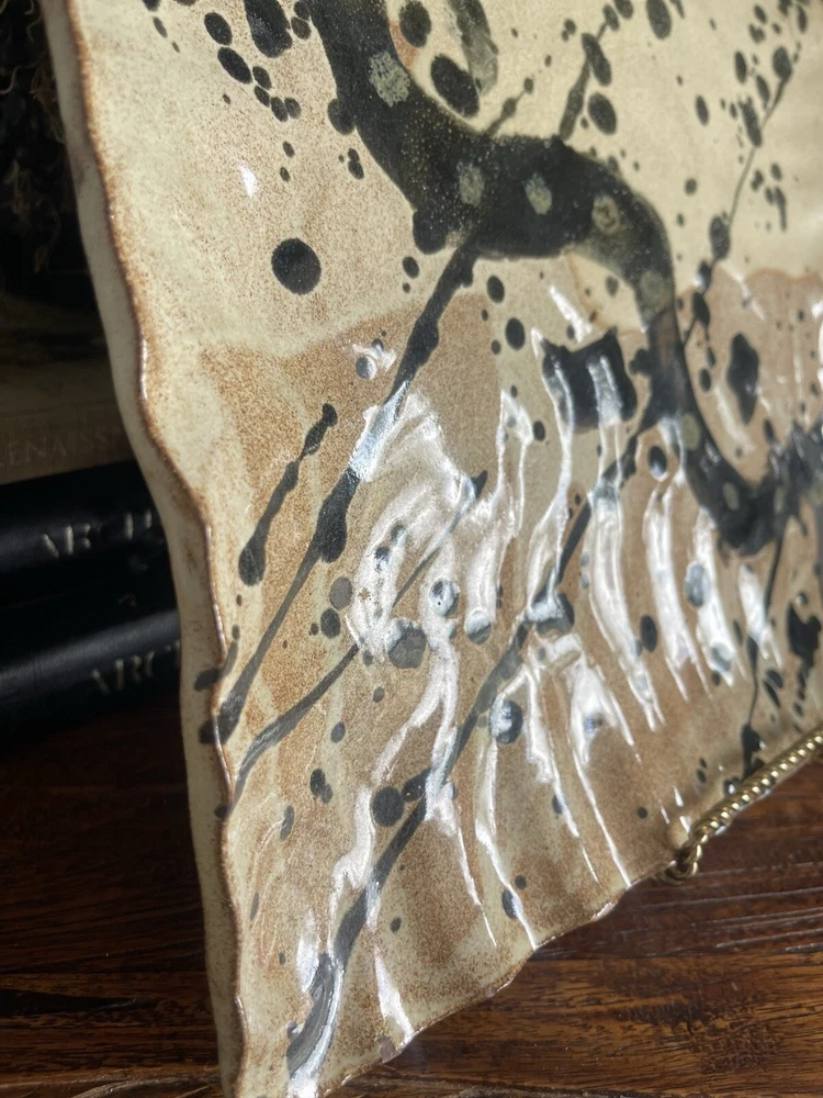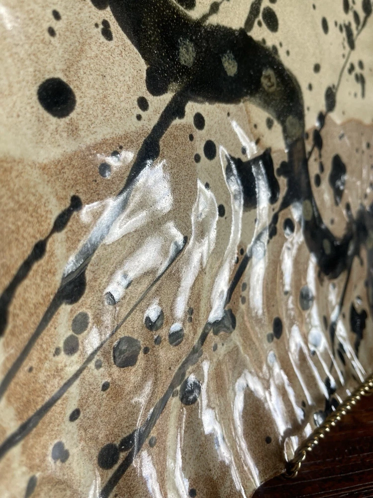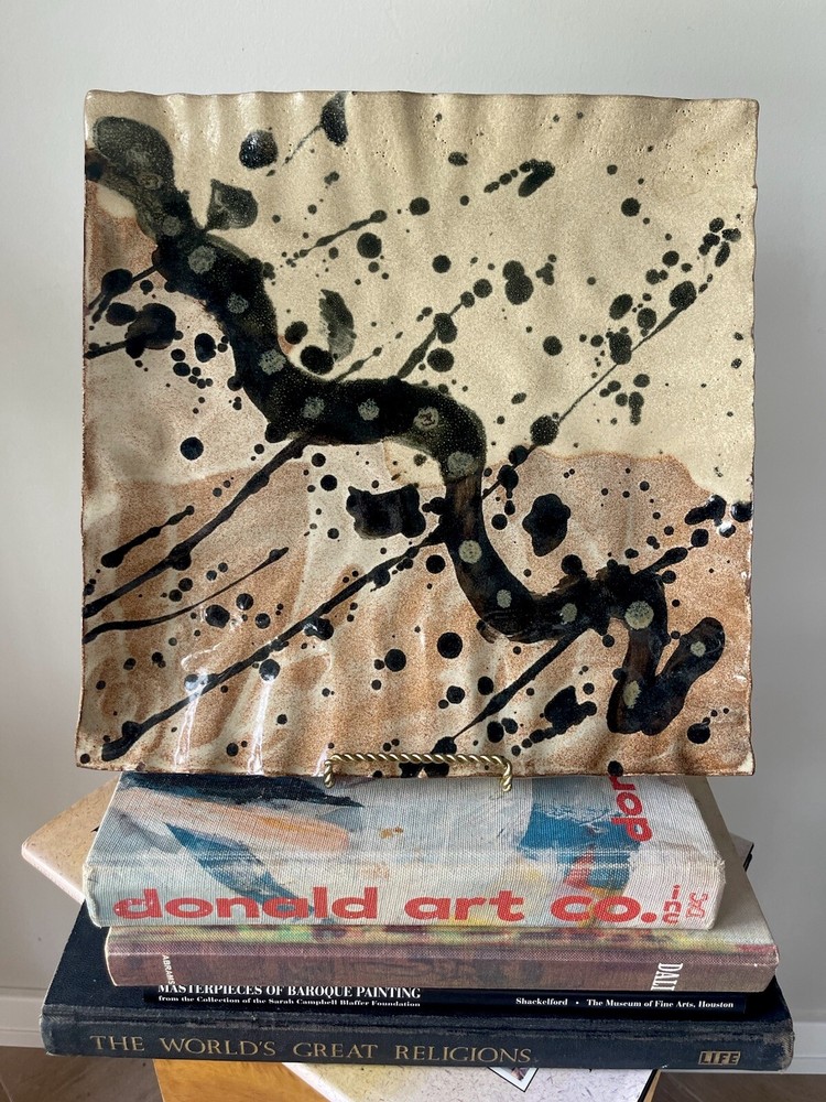 Studio Art at its finest. Square Fluted heavy platter with a Jackson Pollock-like pattern. This piece is done in a soothing color pallet of Beige, Tan, Grey, Black/Navy and Moss Green. There are a few small pencil-tip- sized round specs sporadically along ruffled rim where it appears finish didn’t take vs appearing as a nick… please see photos. Length: 13” Width: 12” Depth: 1.5” Weight: 5 lbs Thank You For Your Interest in What We Love! Please check out our other treasures as inventory is always changing! ~~~~~~ Most of our items are pre-loved, Vintage or may be from an auction or estate sale. We are not considered experts on these items and the descriptions are based on our best knowledge, experience, and research. Statements in regard to maker, age, or origin, particularly on unmarked pieces, should be evaluated and confirmed by the Buyer. All items are sold “as is” and all sales are final. We do not look at items under a microscope, but do the best we can to describe them. We list and photograph any imperfections we see as honestly as we can, but we may miss something from time to time. With the exception of clothing, we do not thoroughly clean our items to prevent damage or loss of value to the item for the buyer. If available, we may include a disclosed stock photo (for comparison) with current photos/info of item. This will inform Buyer and should expedite independent due diligence with reassurance that item is exactly as pictured and noted to the best of Sellers knowledge. Please see all photos as they are part of the description and… feel free to reach out with any questions you may have. You’re Appreciated and Thank You for Stopping By and Sharing Our Love of Beautiful Treasures!! Check Back Often as Inventory is Growing and Ever Changing!