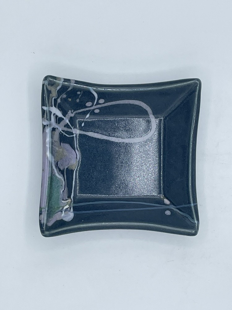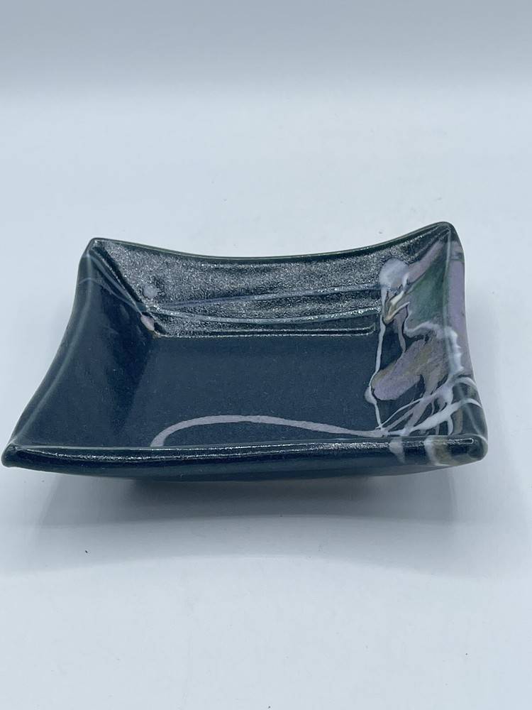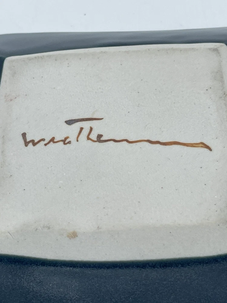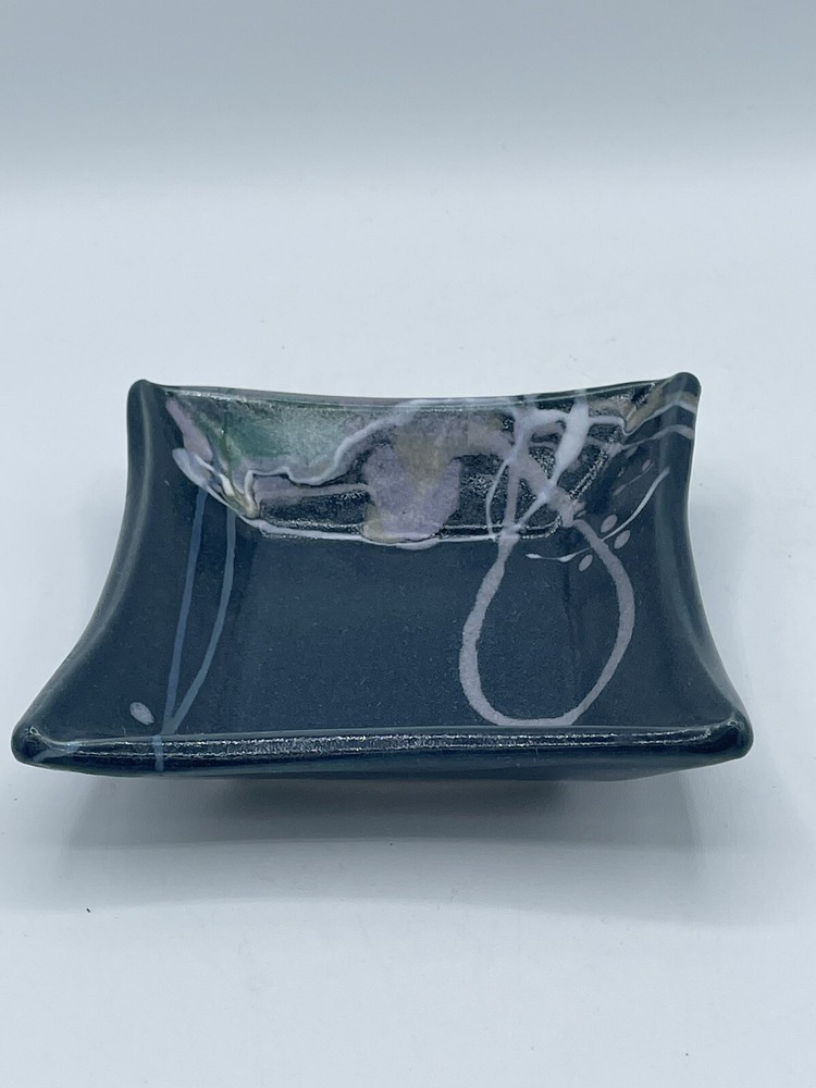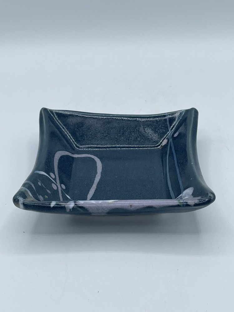 Studio Art Pottery Abstract Design Square Trinket Dish Artist Signed 5” Blue. Condition is Used. Shipped with USPS Ground Advantage.