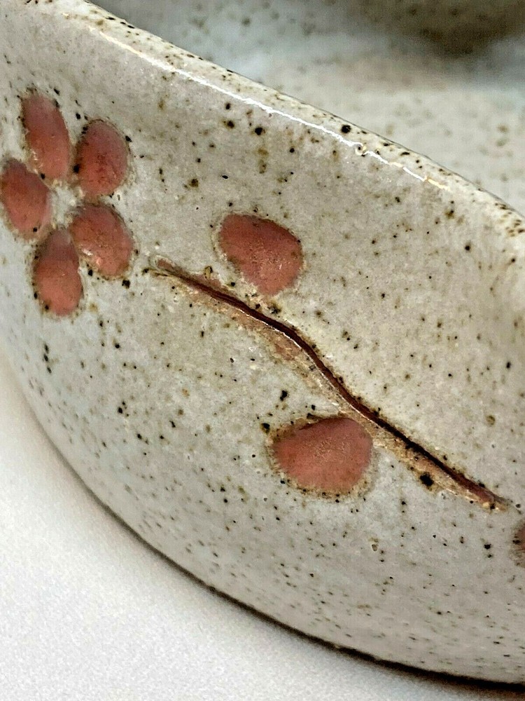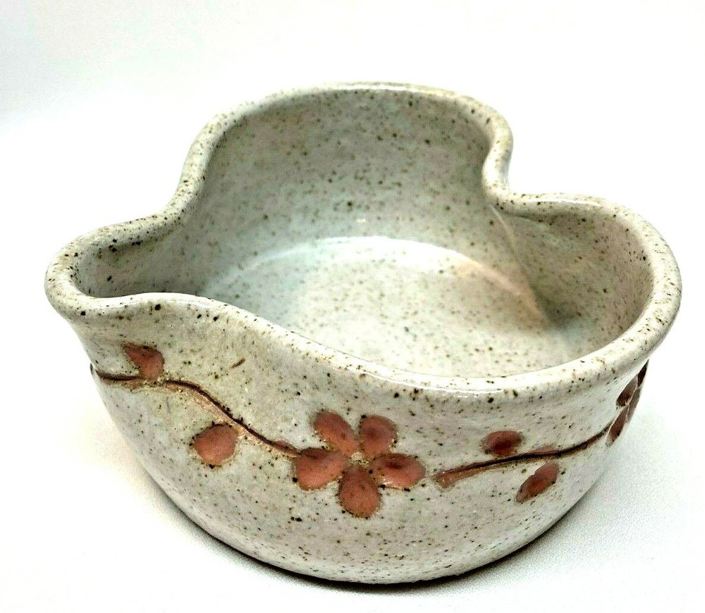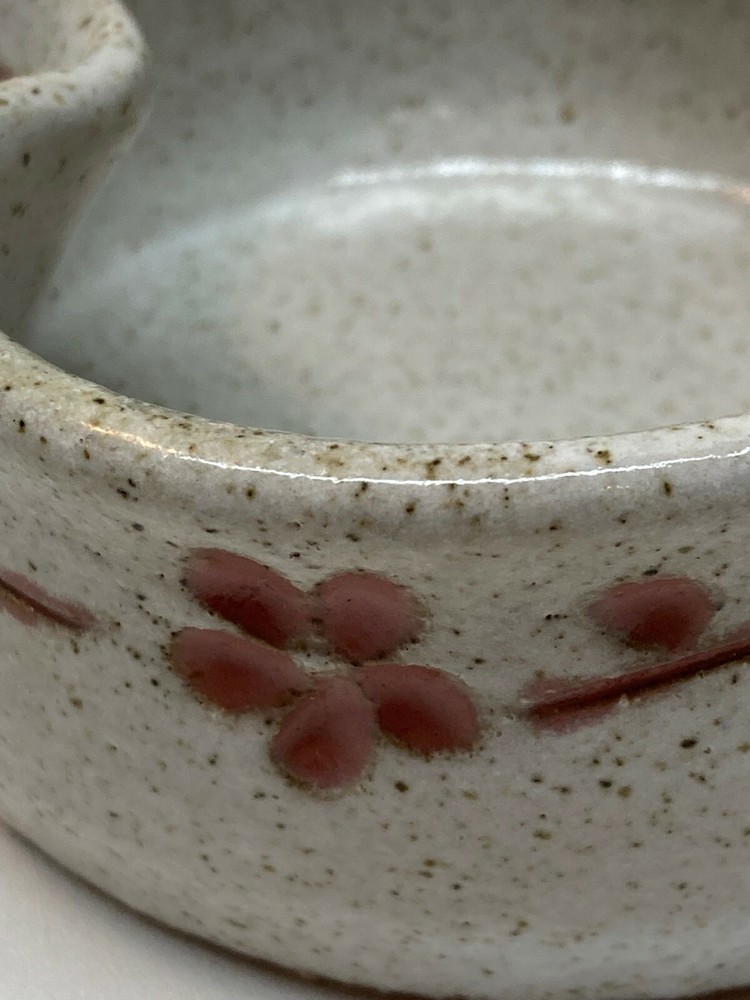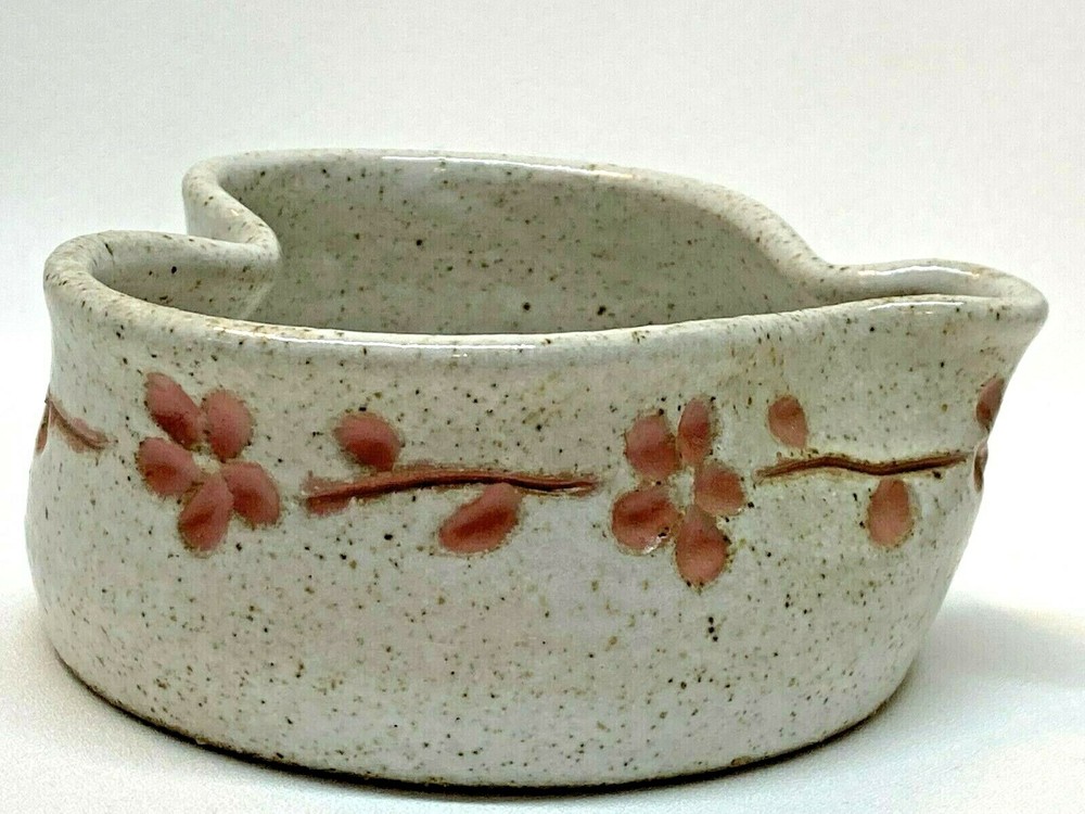 Studio Art Amberstone Pottery Heart Shaped Trinket Candy Dish Bowl Flower Trim Speckled Glaze Approx. 4" wide x 4" long x 2" Tall No chips or cracks